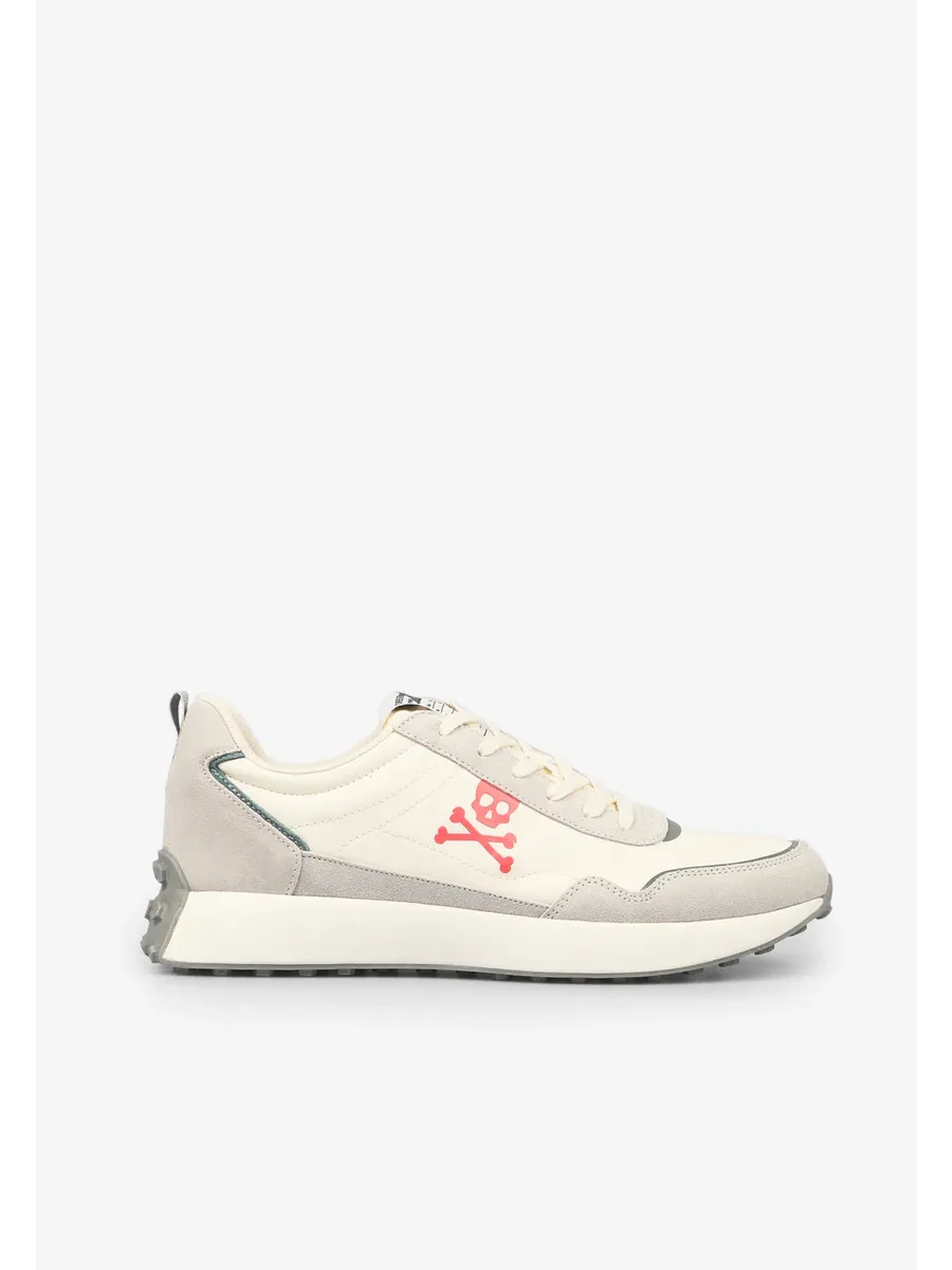 Кроссовки с контрастным боковым черепом. Изготовлены из кожи и переработанного полиэстера Застежка на шнуровке Изогнутая резиновая подошва с зубцами Задний съемник Язычок с этикеткой Детали из замши