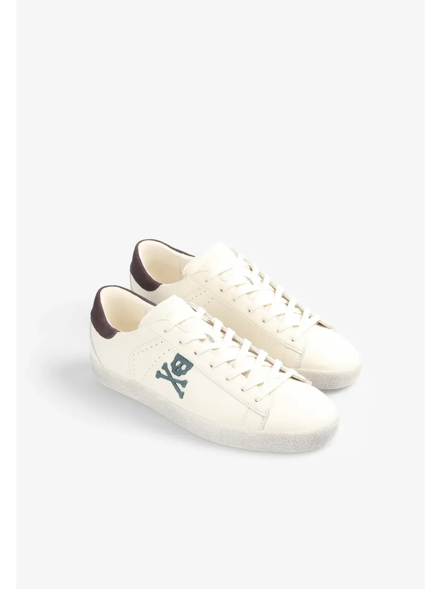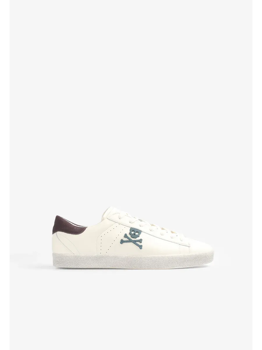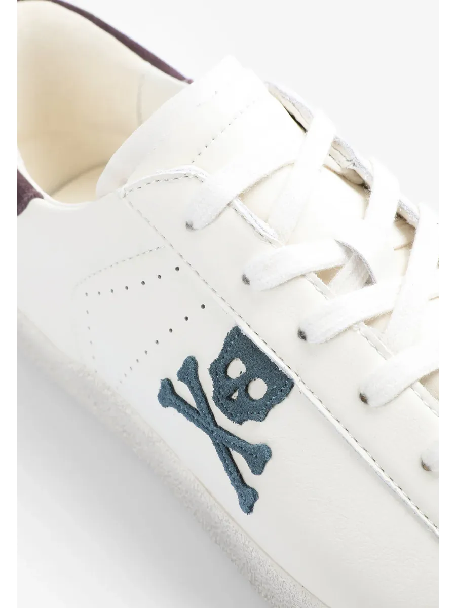 Кроссовки из кожи с контрастным рисунком черепа сбоку. Застежка на шнуровке в тон Подошва из переработанной резины с эффектом потертости Контрастные детали на каблуке