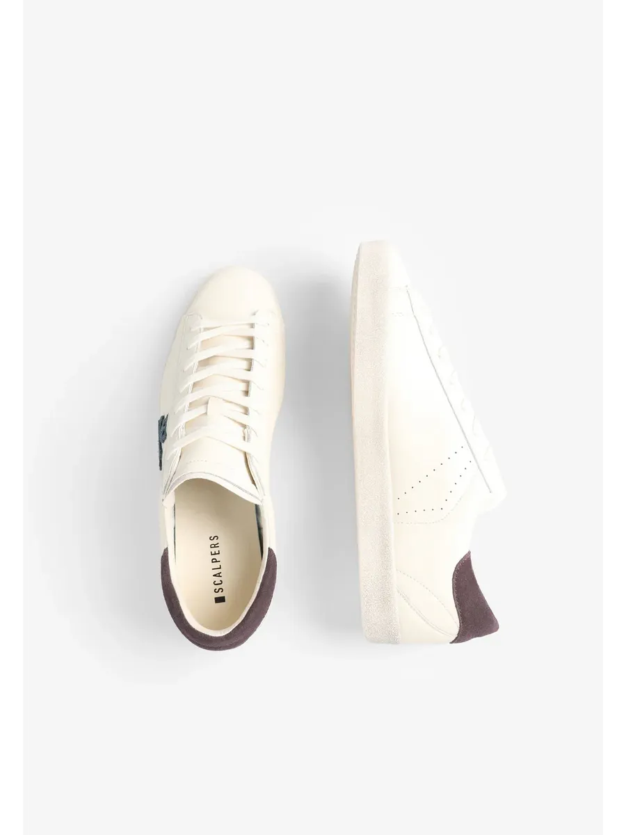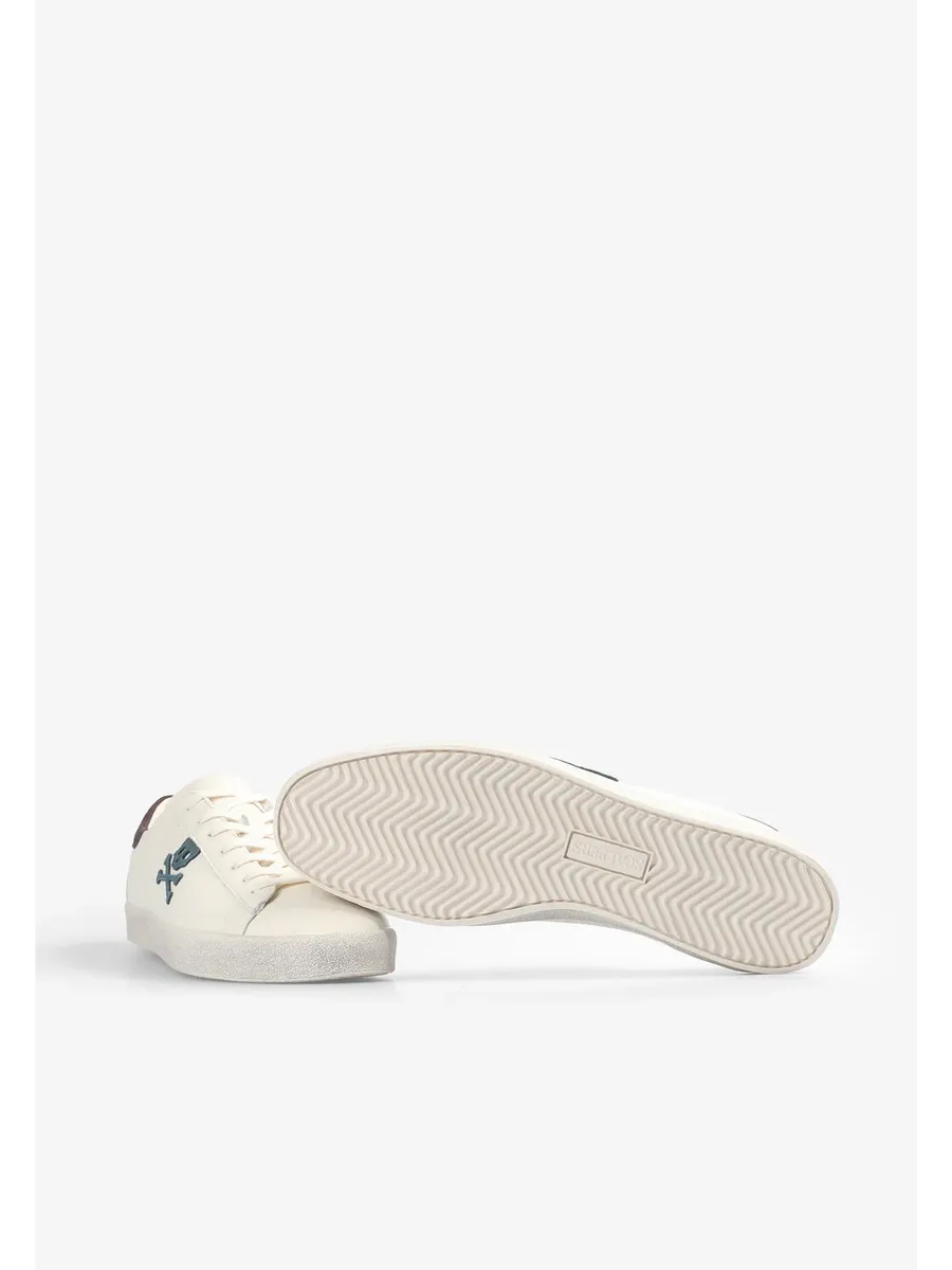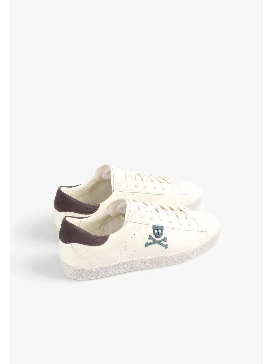 Кроссовки из кожи с контрастным рисунком черепа сбоку. Застежка на шнуровке в тон Подошва из переработанной резины с эффектом потертости Контрастные детали на каблуке