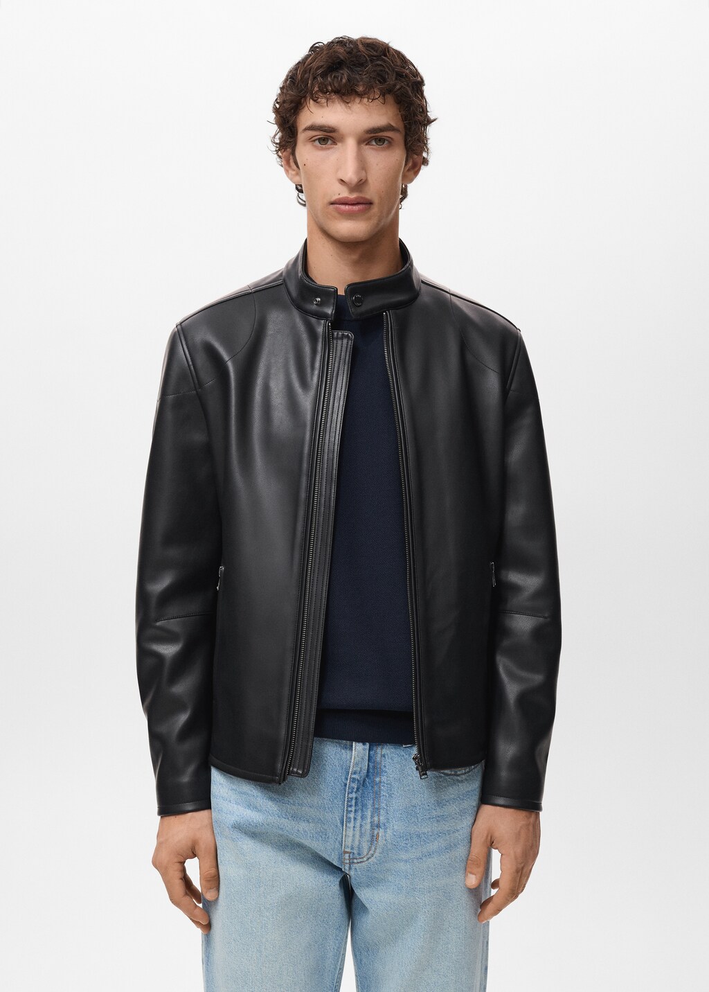 черный цвет доступен только онлайн, слим фит, эффект кожи, спереди два кармана на молнии, воротник-стойка с застежкой на пуговицу, спереди застежка на молнию, манжеты с застежкой на молнию, модель ростом 185 см и носит размер m,, . длина спины: 65,0 cm
