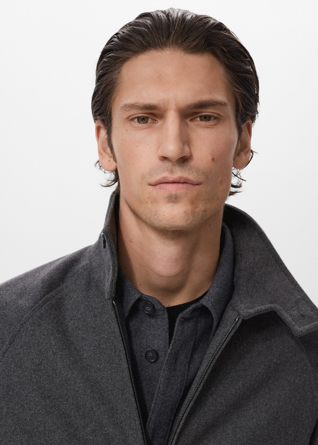 в состав входит шерсть, прямой силуэт, воротник-стойка с застежкой на пуговицу, два боковых накладных кармана, внутренний карман, длинные рукава с застежкой на пуговицы, спереди застежка на молнию, модель ростом 190 см носит размер m,, . длина спины: 66,0 cm