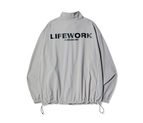 Куртка на молнии LifeWork выполнена из лёгкого сочетания нейлона (78%) и полиуретана (22%), обеспечивая комфорт и вентиляцию. Модель в сером цвете украшена вышивкой Ladok, логотип‑принтом и карманом на молнии с логотипом. Шнурок внизу позволяет регулировать посадку, делая куртку практичной и стильной для повседневной носки.