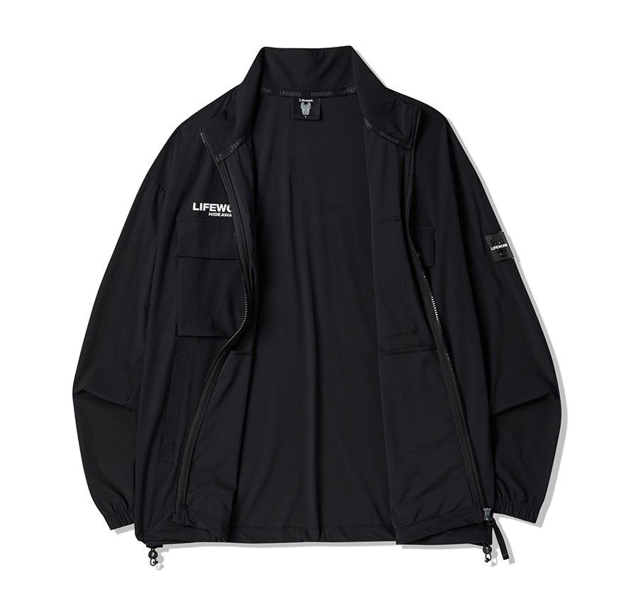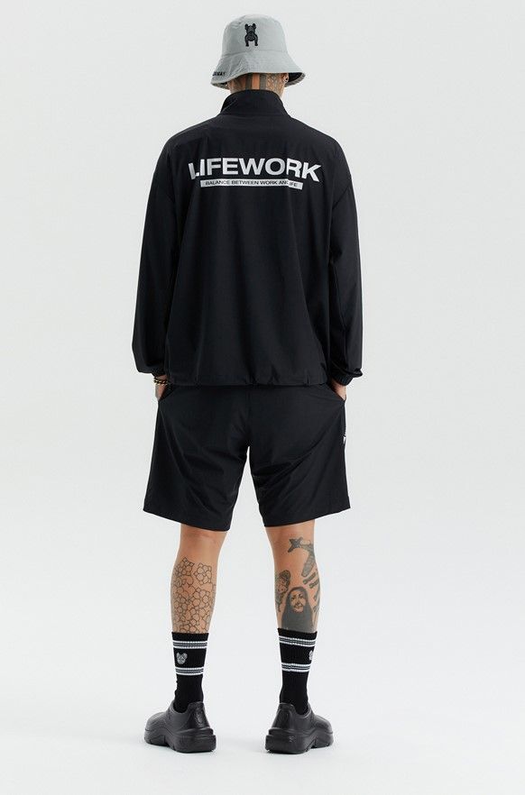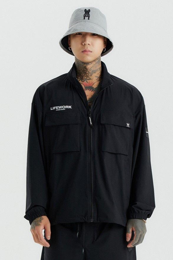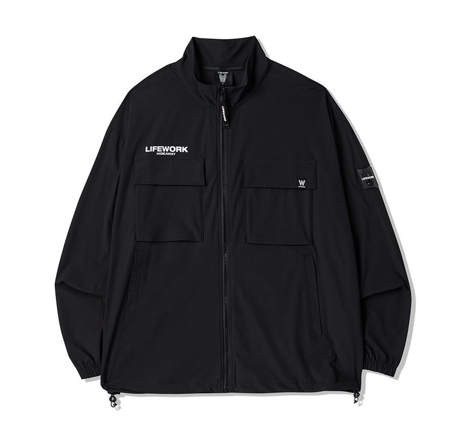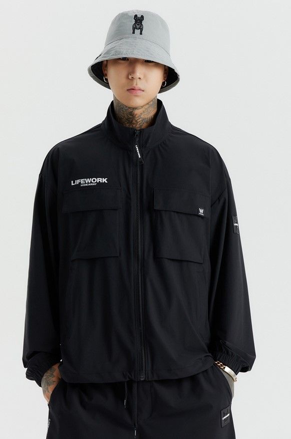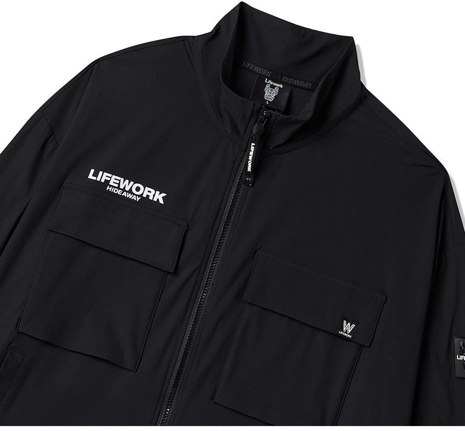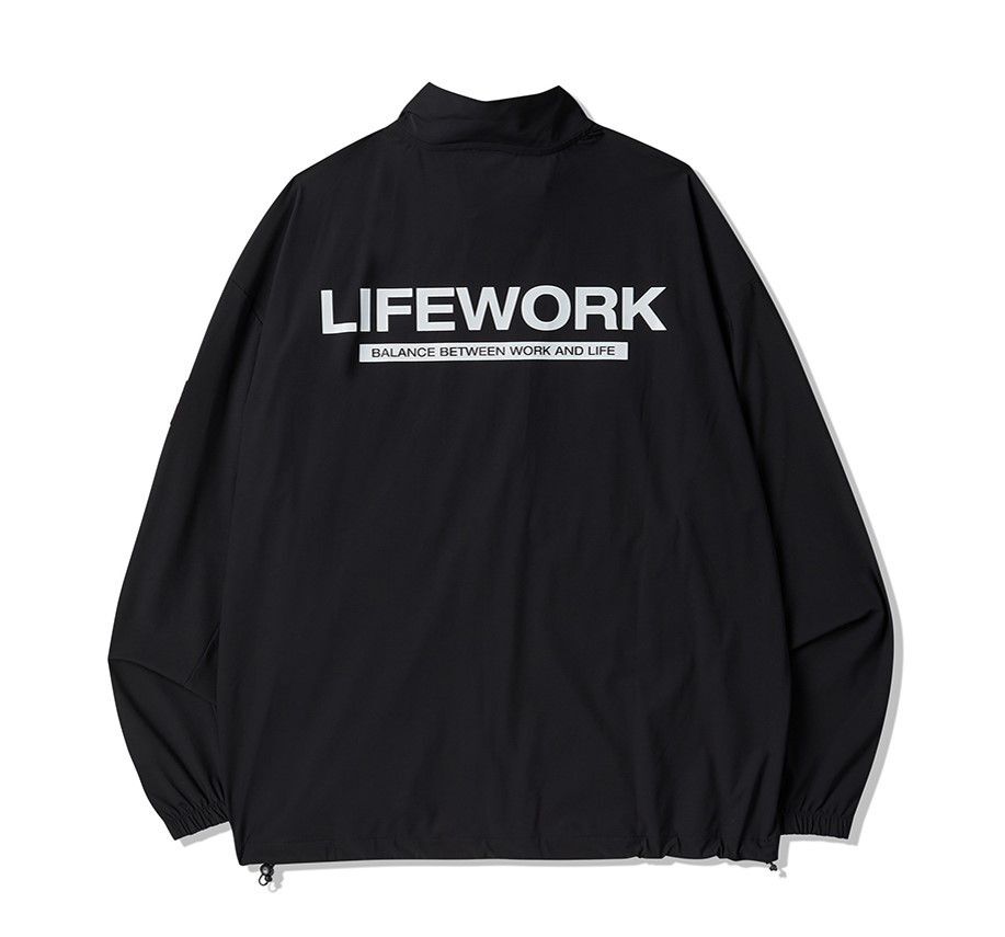 Куртка LifeWork выполнена из эластичного и прочного сочетания нейлона и полиуретана, обеспечивая комфорт и защиту от ветра благодаря плотно прилегающим манжетам и высокому воротнику. Модель оснащена нашивными карманами и украшена стильным квадратным логотипом и принтом, что подчеркивает её спортивный стиль. Эта куртка идеально подходит для тренировок на свежем воздухе, активного отдыха и повседневной носки в тёплый сезон, сочетаясь с брюками, шортами и кроссовками.