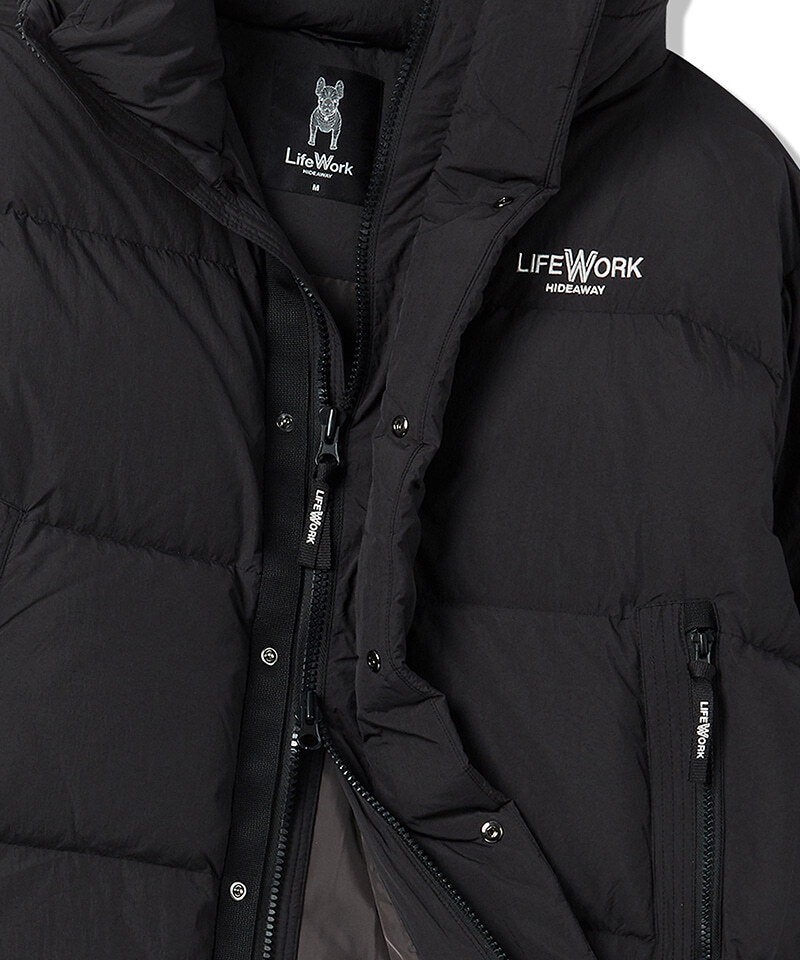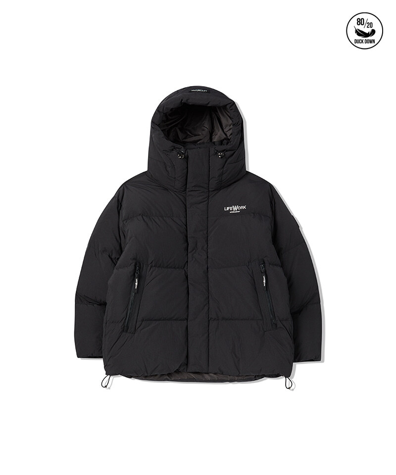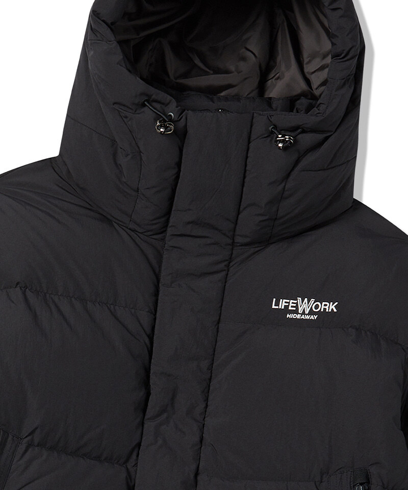 Мужская зимняя куртка-пуховик Lifework из нейлона с утеплителем из утиных перьев. Двухслойная подкладка и утепленные карманы сохраняют тепло. Двусторонняя молния, капюшон с регулировкой и вышитый логотип. Прямой крой, длина до бедра. Черный цвет, размер L (50). Сделано во Вьетнаме. Идеальный выбор для холодного сезона.