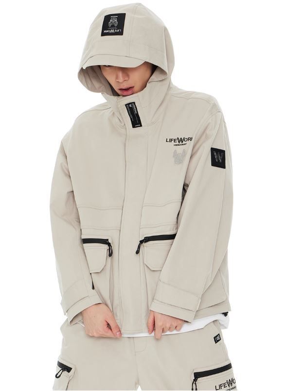 Фирменные нашивки и квадратный логотип на рукаве подчёркивают уникальность бренда LifeWork, который сочетает практичность и модный дизайн.