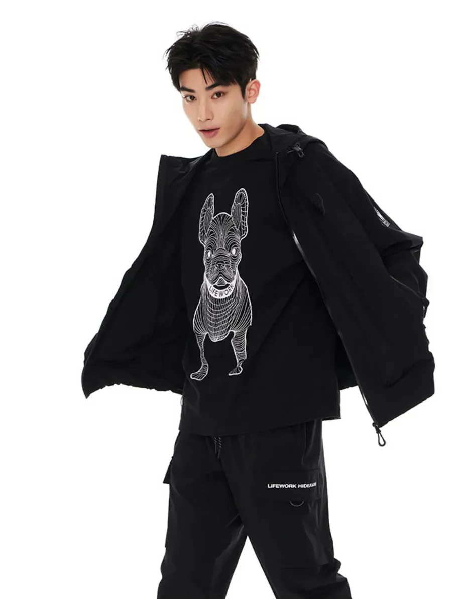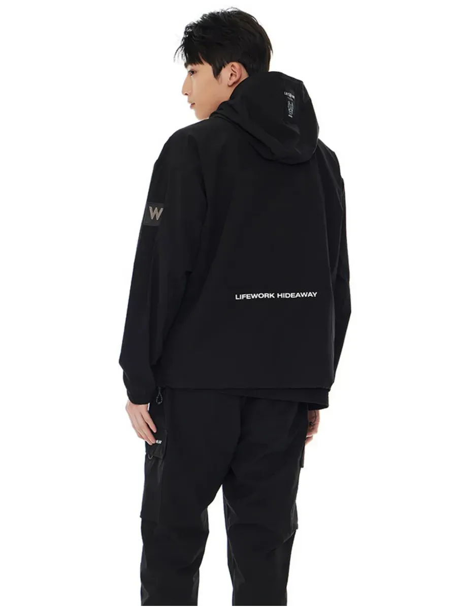 Фирменные детали — вышивка, нашивки и логотип на рукаве — подчёркивают стиль бренда LifeWork, сочетающего комфорт и городской casual.