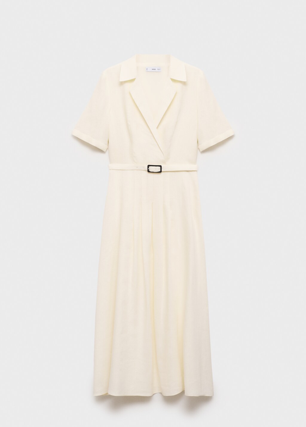 ткань 100% из льна, коллекция рамадан, расклешенный дизайн, миди дизайн, v-образный вырез горловины с лацканами, лацканы с вырезом, короткий рукав, пояс с застежкой на пряжку, деталь передних складок, внутренняя подкладка