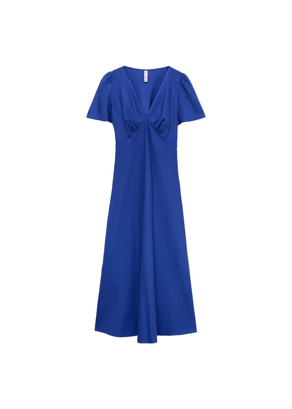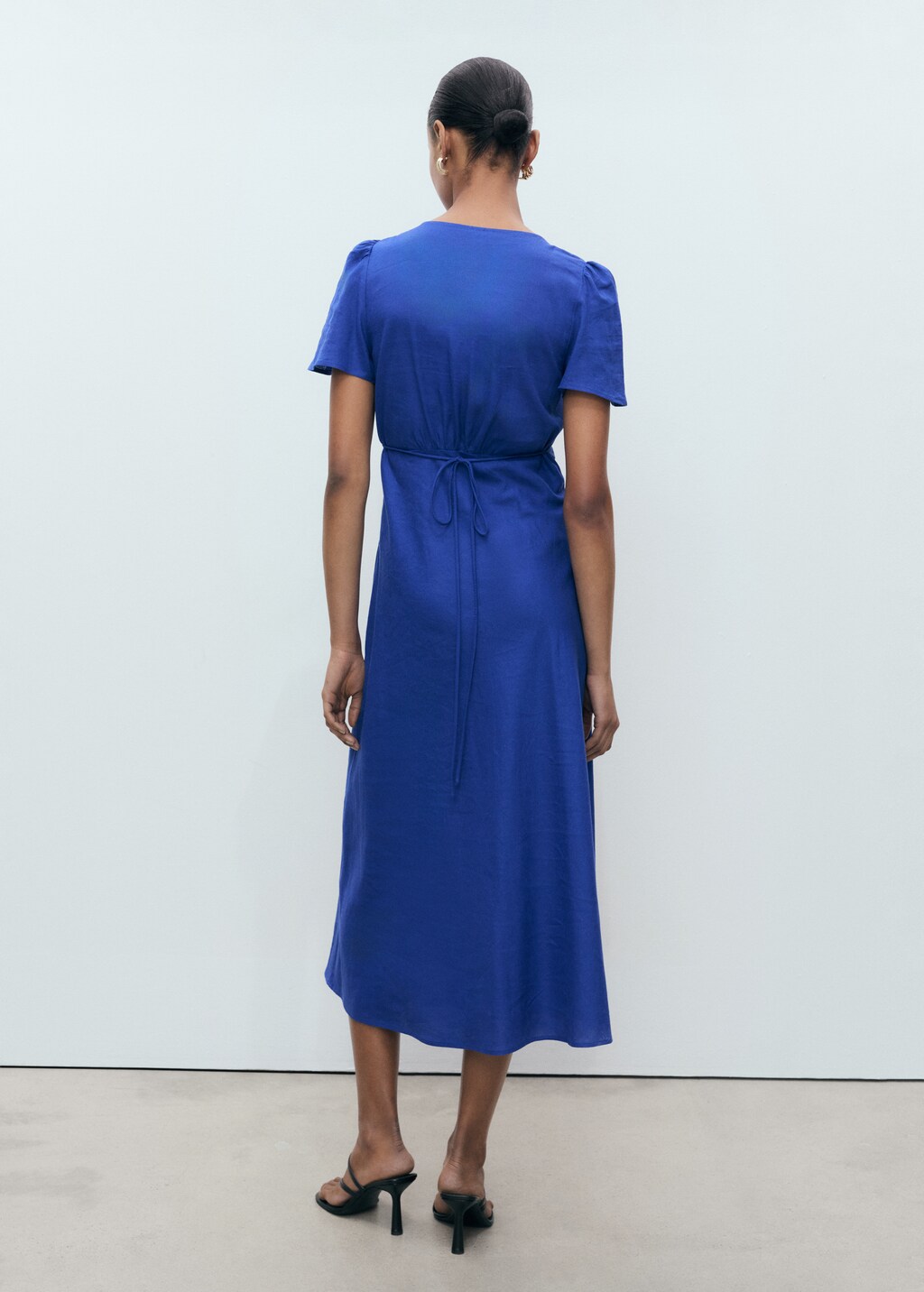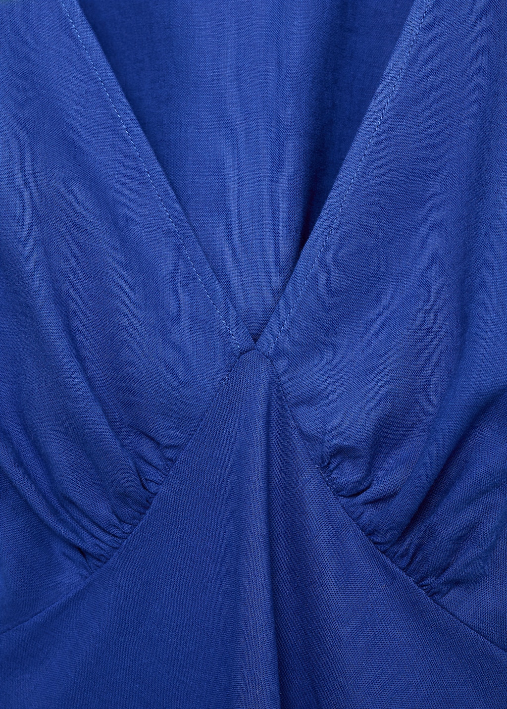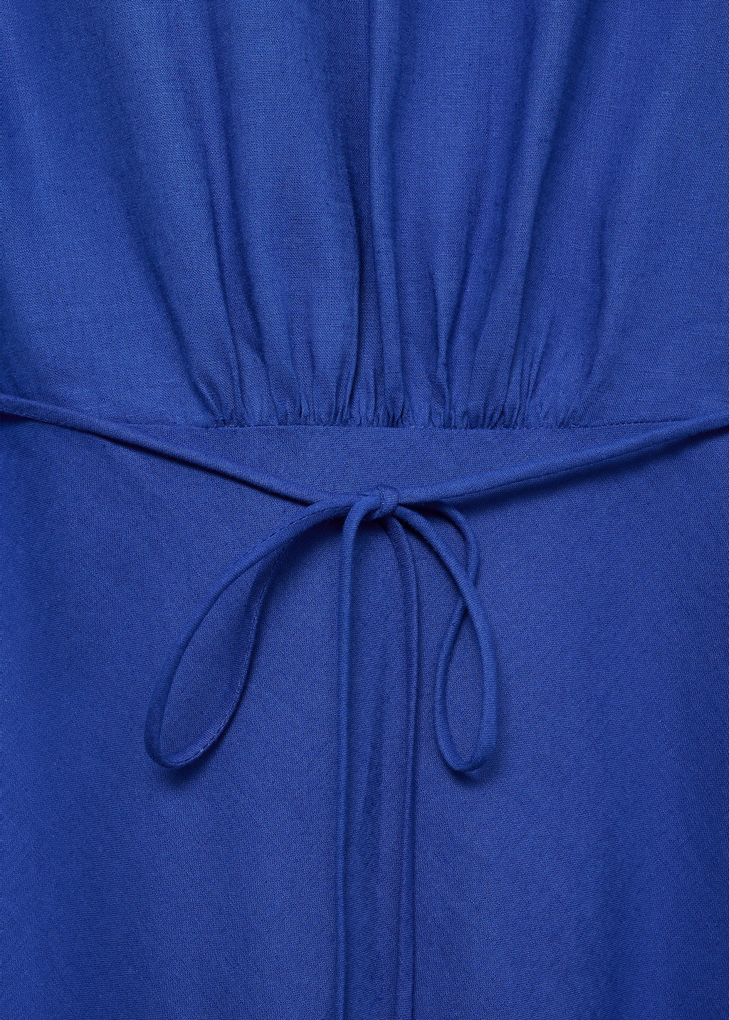 Платье изготовлено из натурального льна, который известен своими гипоаллергенными свойствами и способностью регулировать температуру тела. Это делает его отличным выбором для жаркой погоды или для тех, кто предпочитает натуральные материалы.