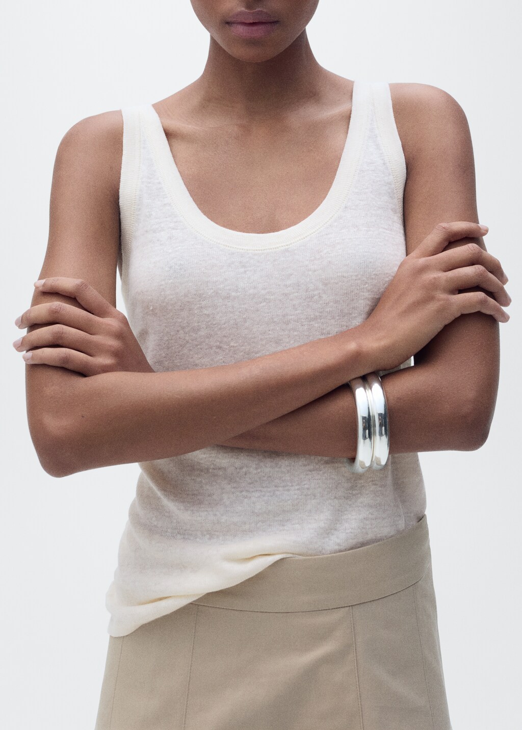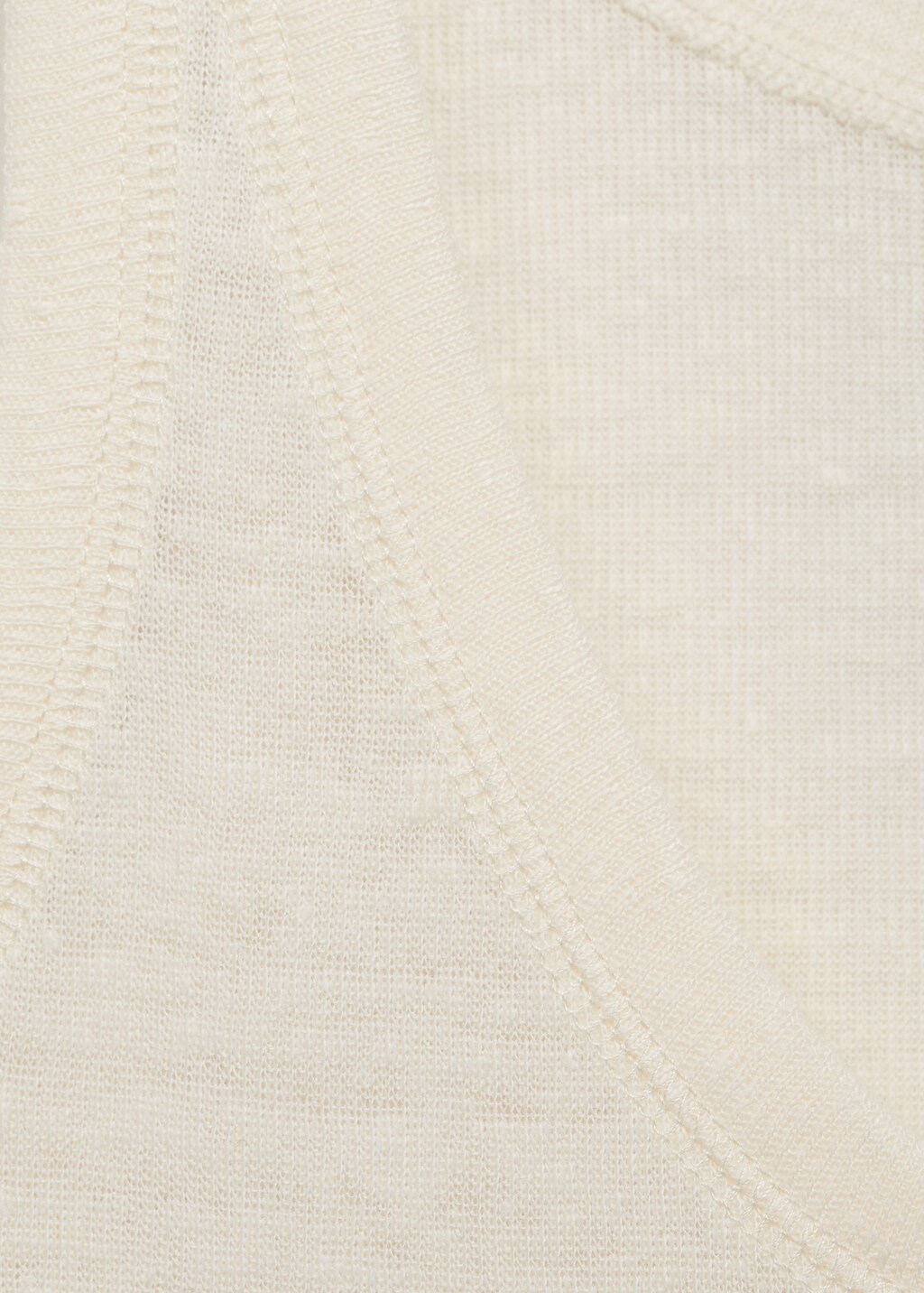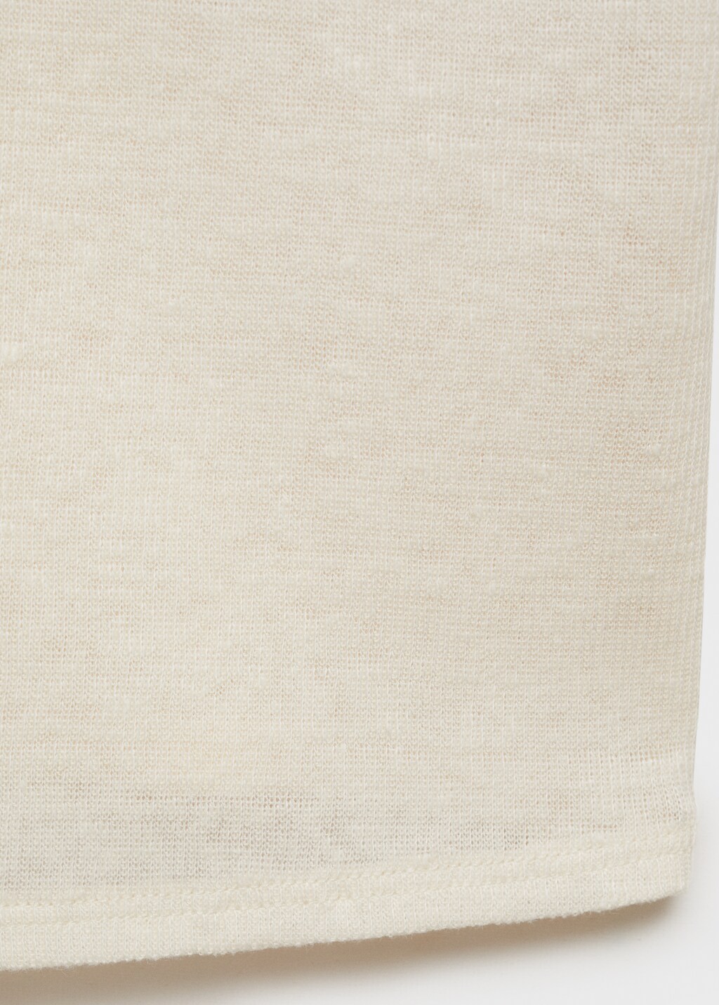 Льняной топ на бретельках от MANGO - это сочетание комфорта и стиля. Он станет отличным дополнением к вашему гардеробу и подчеркнет вашу индивидуальность и уверенность, делая образ законченным и гармоничным.