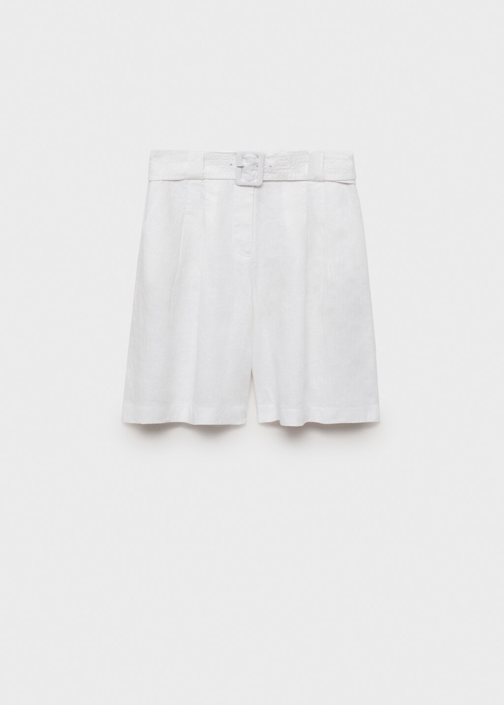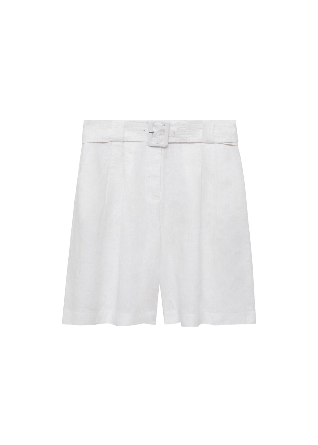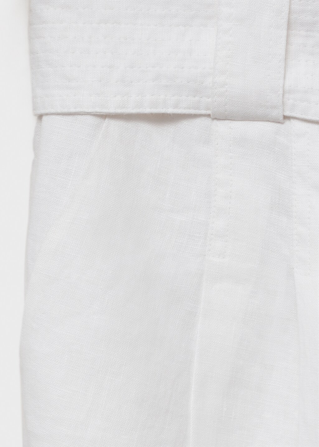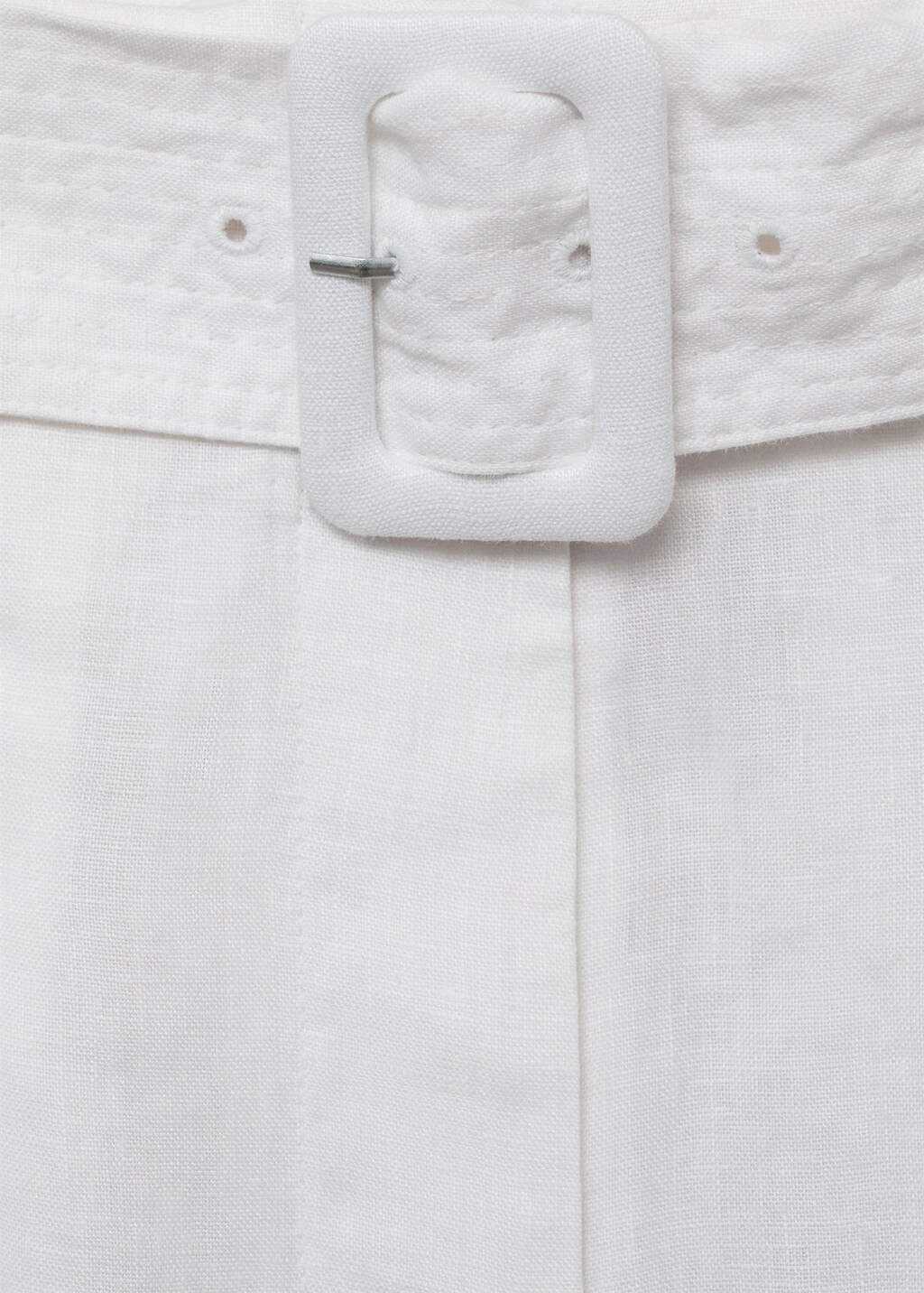 ткань 100% из льна, прямой крой, средняя посадка, шлёвки, пояс с застежкой на пряжку, два боковых кармана, передняя застежка на пуговицу, крючок и молнию, скрытые под планкой,, . внутренняя длина: 23,5 cm . внешняя длина: 53,0 cm
