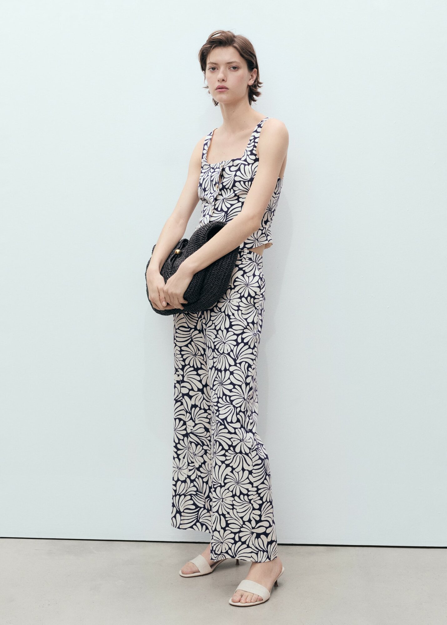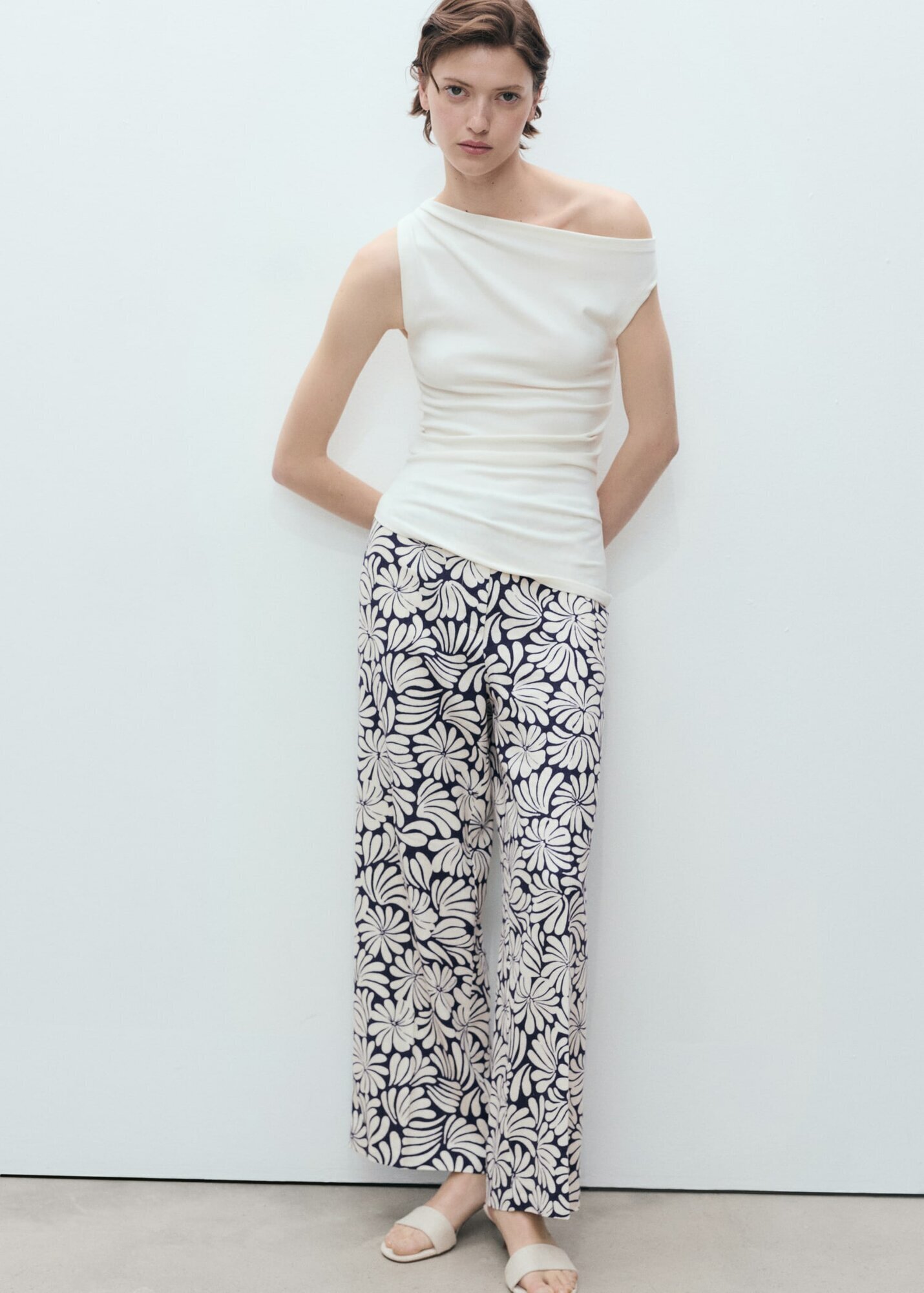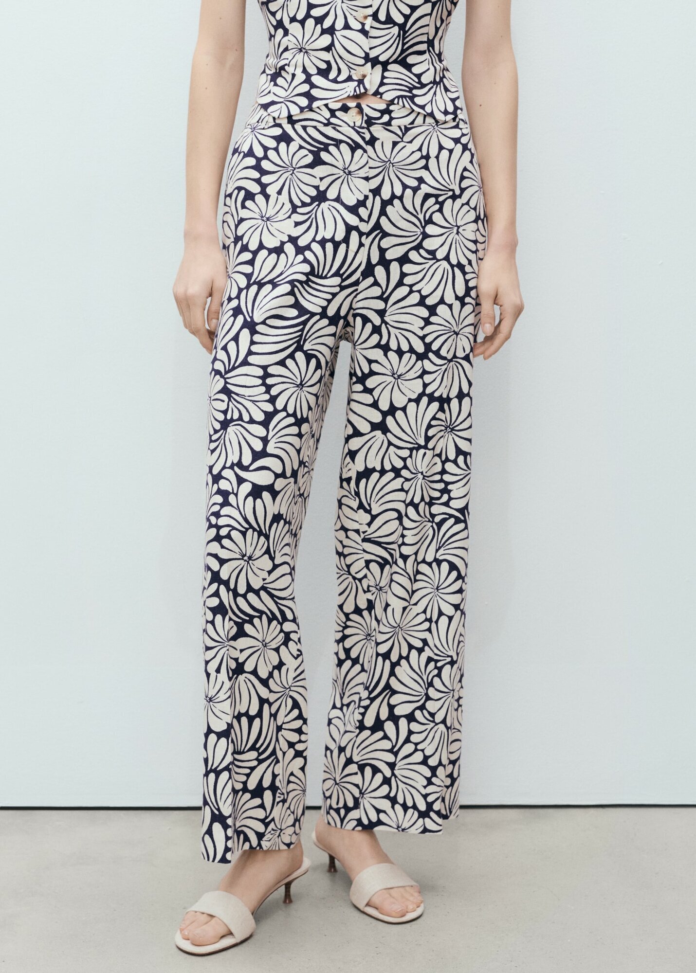 Льняные брюки с цветами от MANGO - это стильный и комфортный выбор для взрослых.