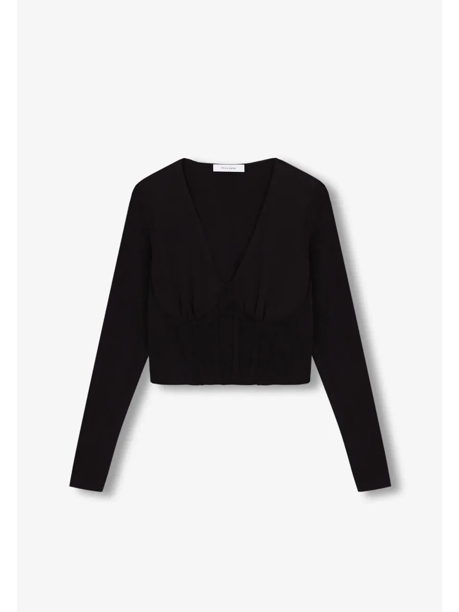 Топ с деталями корсетного типа с рюшами. Изготовлен из слегка эластичной ткани Corte Slim fit V-образный вырез Длинный рукав