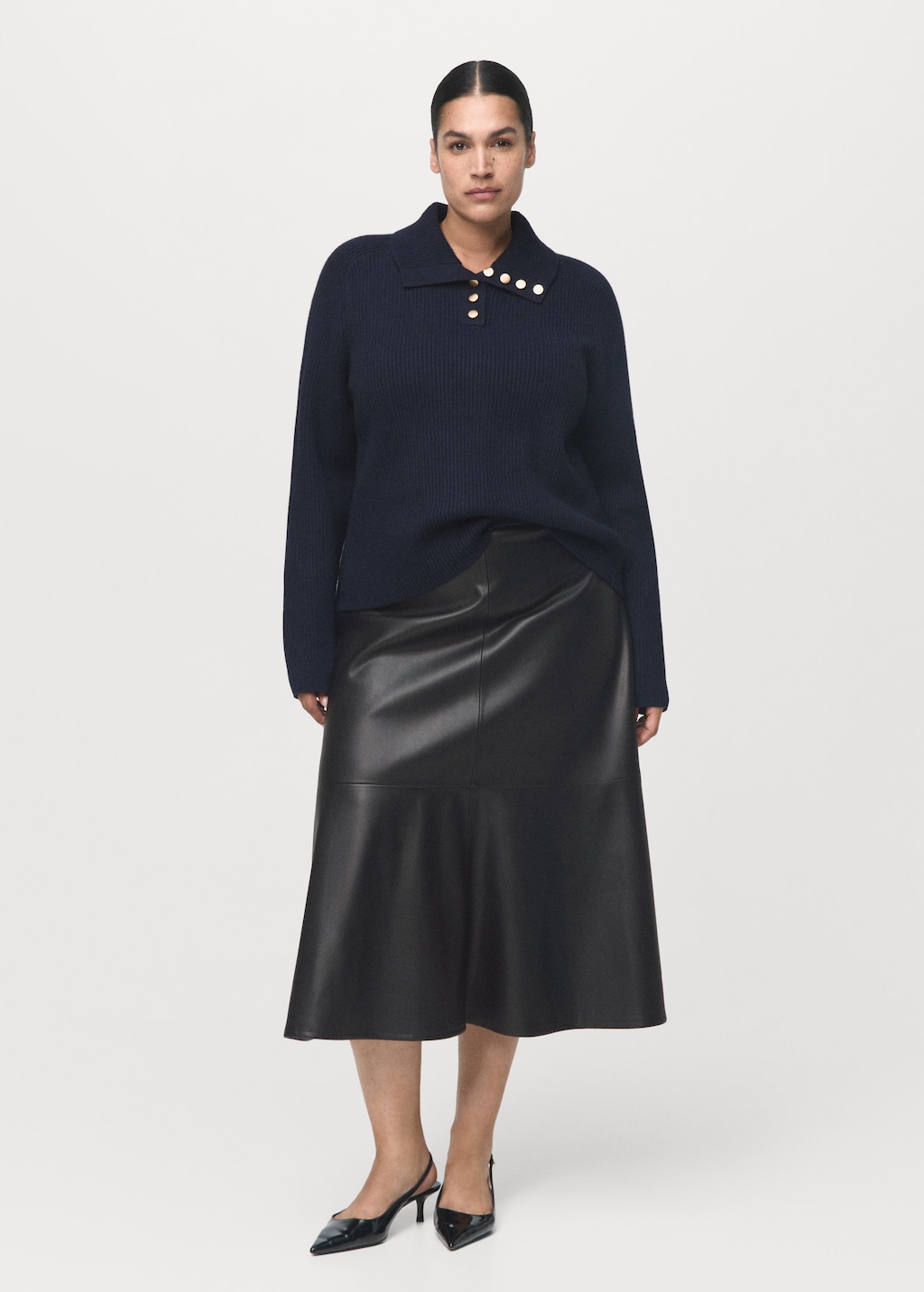 Миди-юбка из искусственной кожи от MANGO - стильный и практичный выбор для женщин.