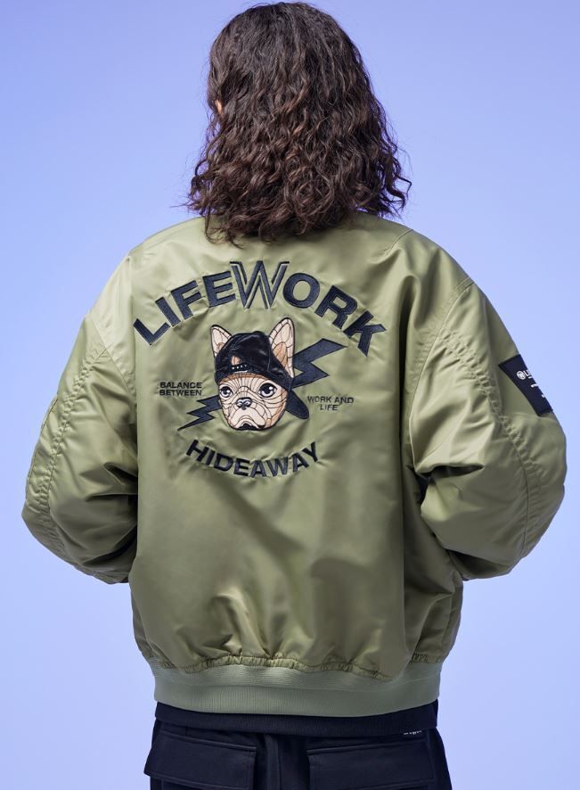 Декорирована фирменными элементами: логотип Squared на груди в виде вышивки и нашивки, а также крупной вышивкой Hapdok на спине — узнаваемая эстетика корейского бренда LifeWork, сочетающего комфорт и уличный стиль.