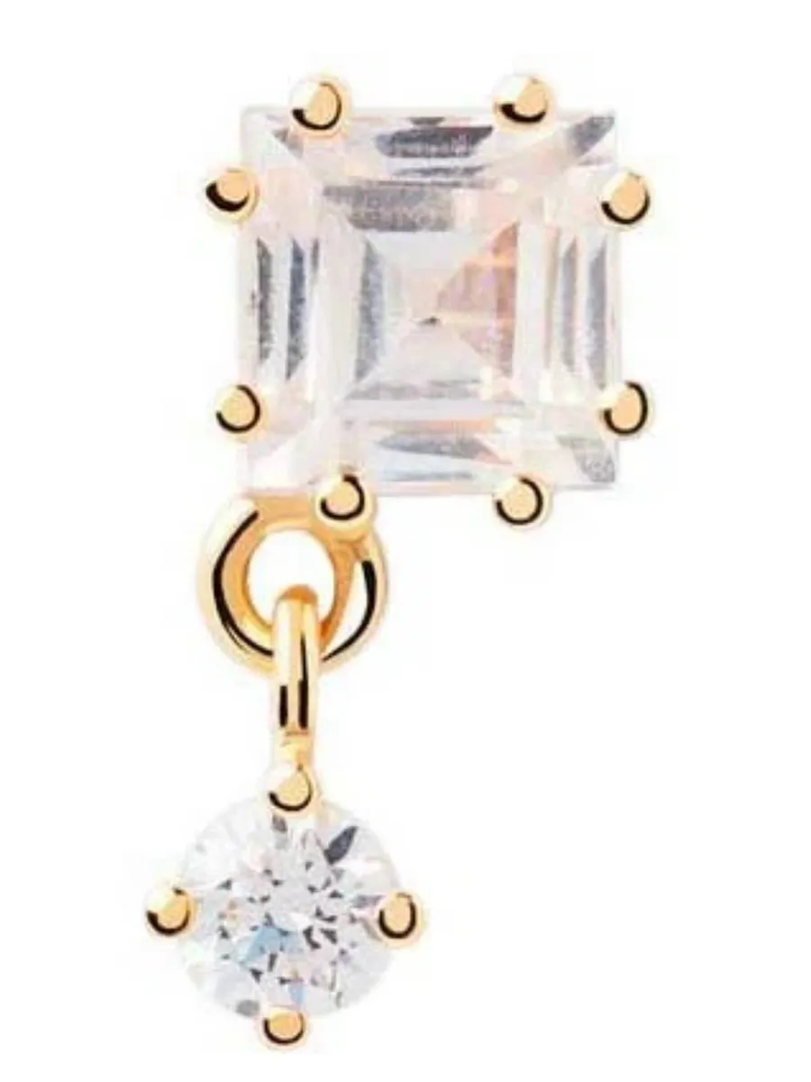 Серьга выполнена из серебра 925 пробы с гальваническим покрытием 18‑каратным золотом, что гарантирует высокое качество и долговечность изделия. Вставка из циркона придает украшению блеск и яркость, делая его заметным и привлекательным.