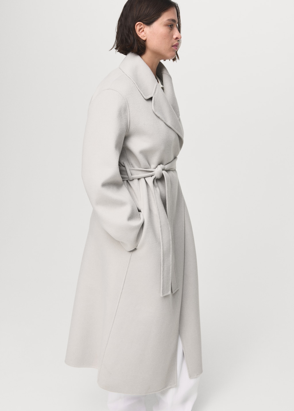 Пальто из шерсти ручной работы с поясом от MANGO - это изысканное и стильное решение для тех, кто ценит комфорт и качество.