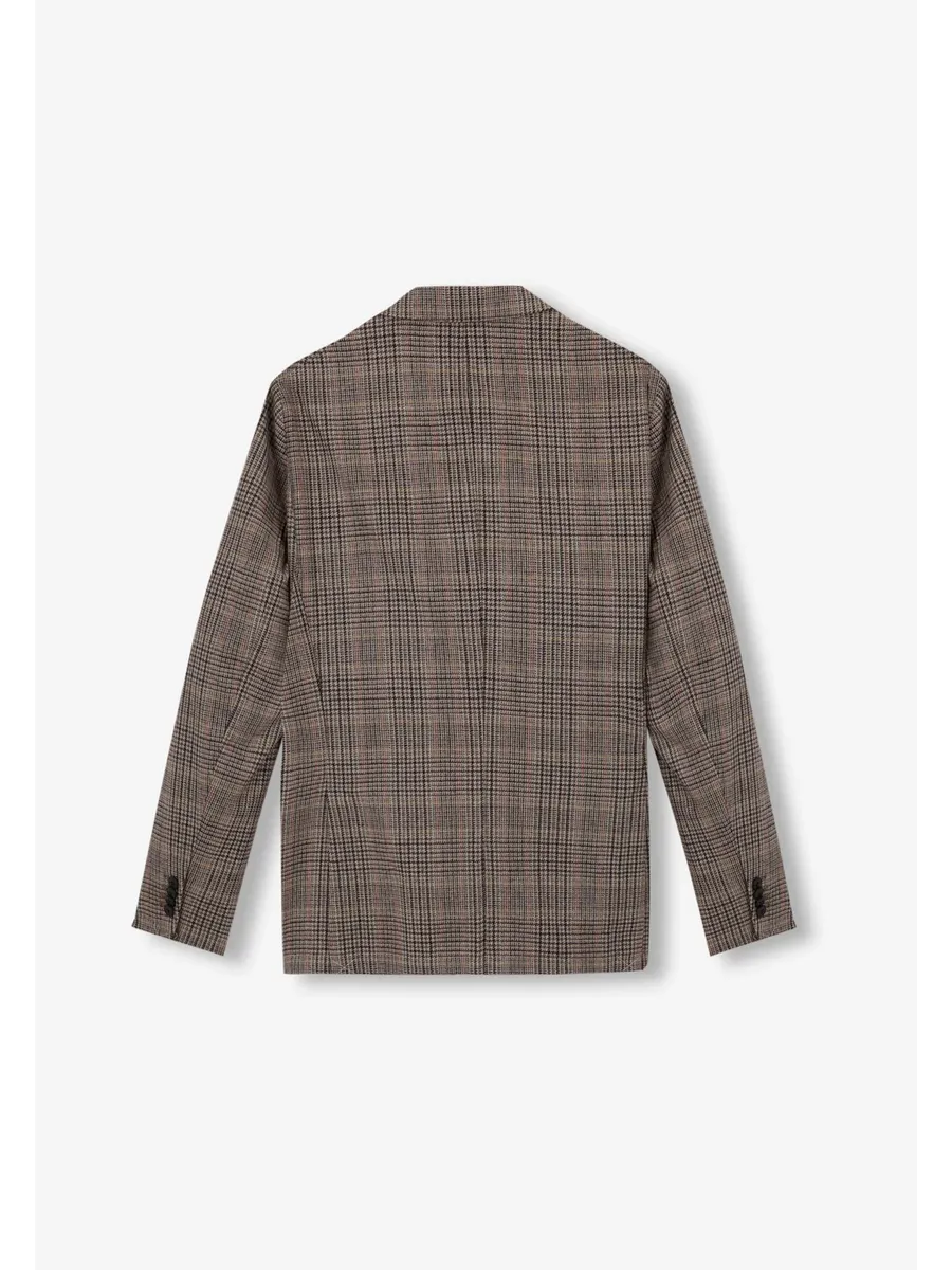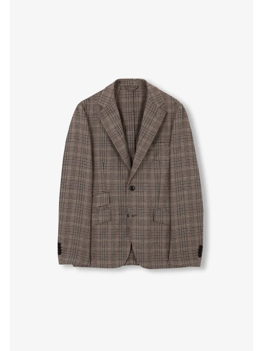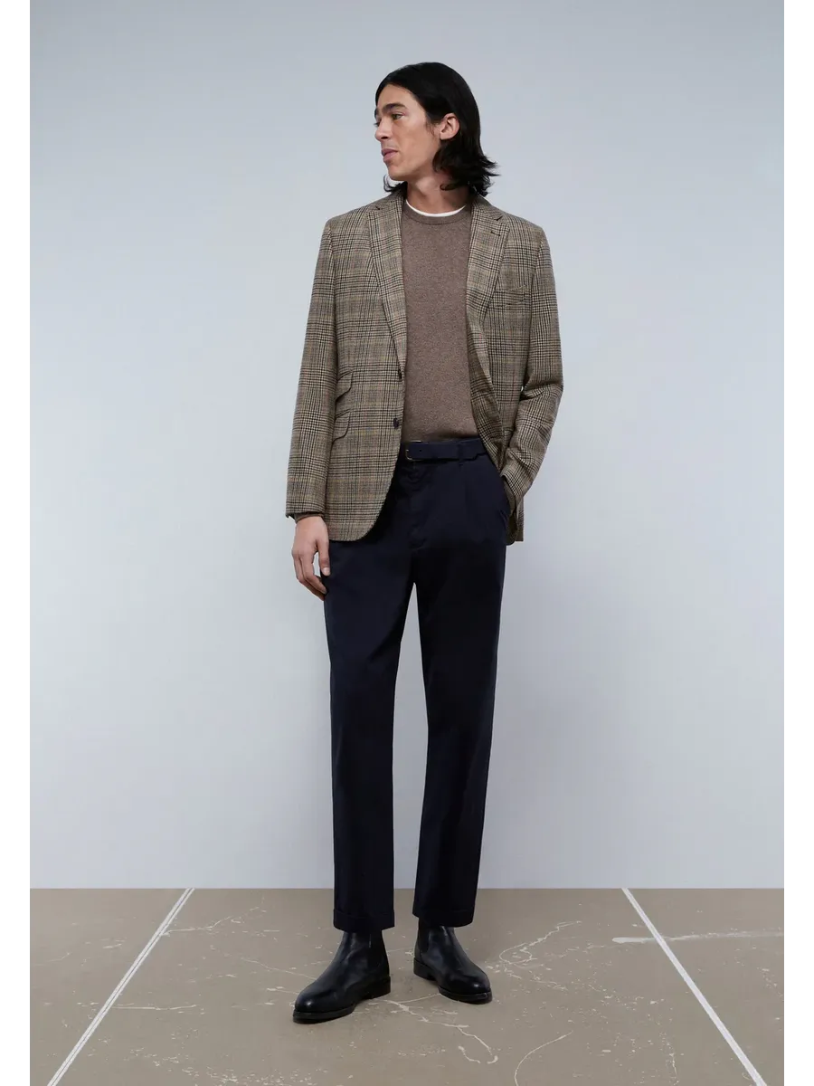 Блайзер мужской в клетку. Изготовлен из смесовой шерсти Обычная посадка Воротник с отворотом с выемкой Застежка на пуговицы Карманы с клапанами Длинный рукав с манжетами и практичными пуговицами