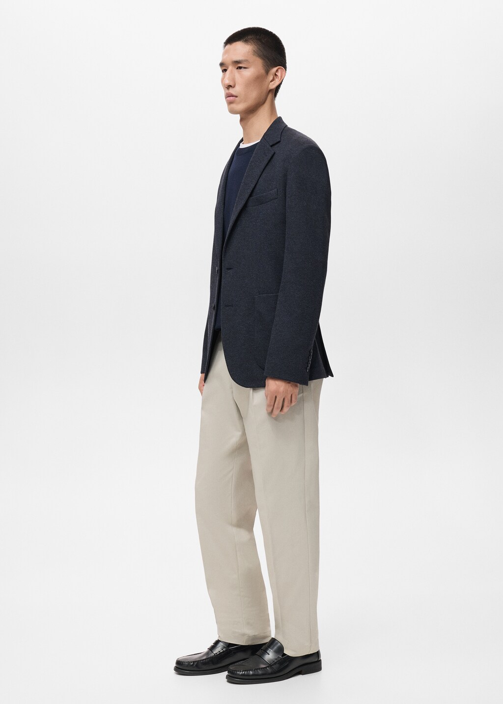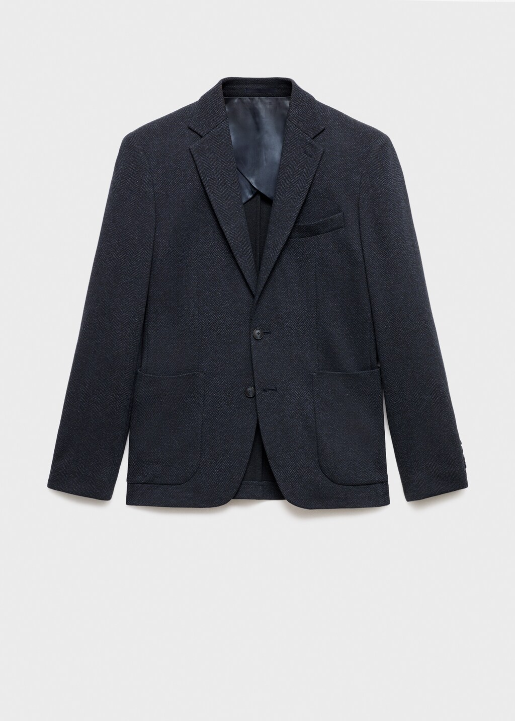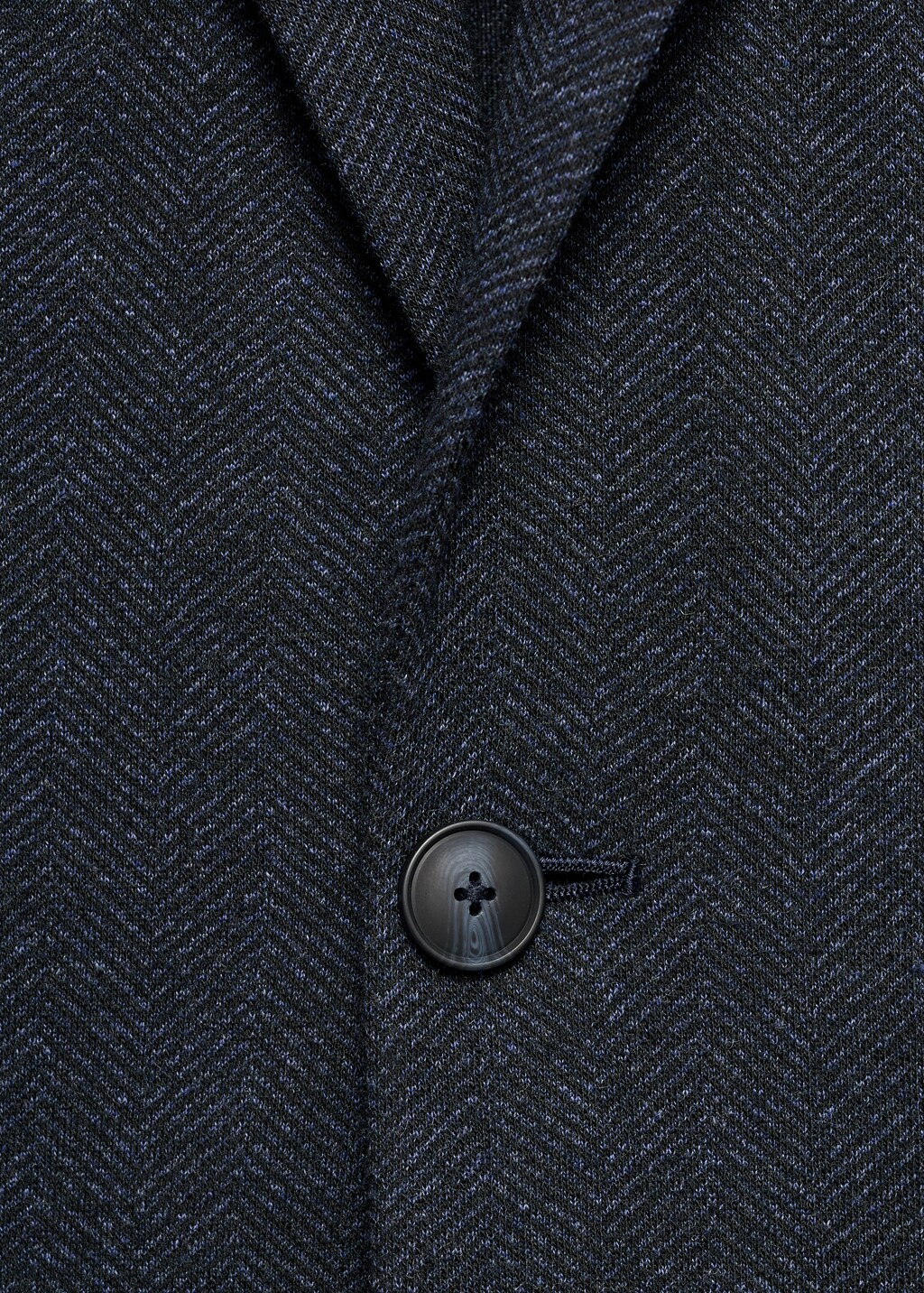слим фит, застежка на две пуговицы спереди, модель ростом 190 см носит размер m, ткань из смеси хлопка, трикотаж в елочку, воротник с лацканами, нагрудный карман с окантовкой, два накладных кармана спереди, внутренний карман, длинные рукава с застежкой на пуговицы, двойной разрез сзади внизу,, . длина спины: 73,0 cm