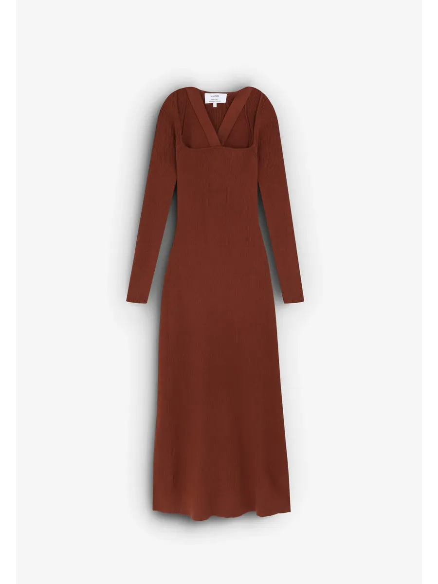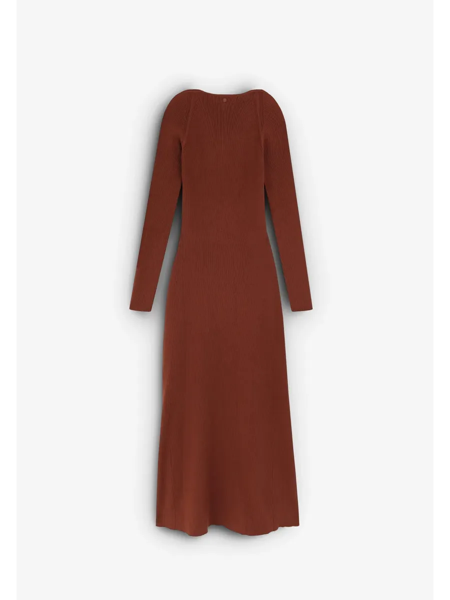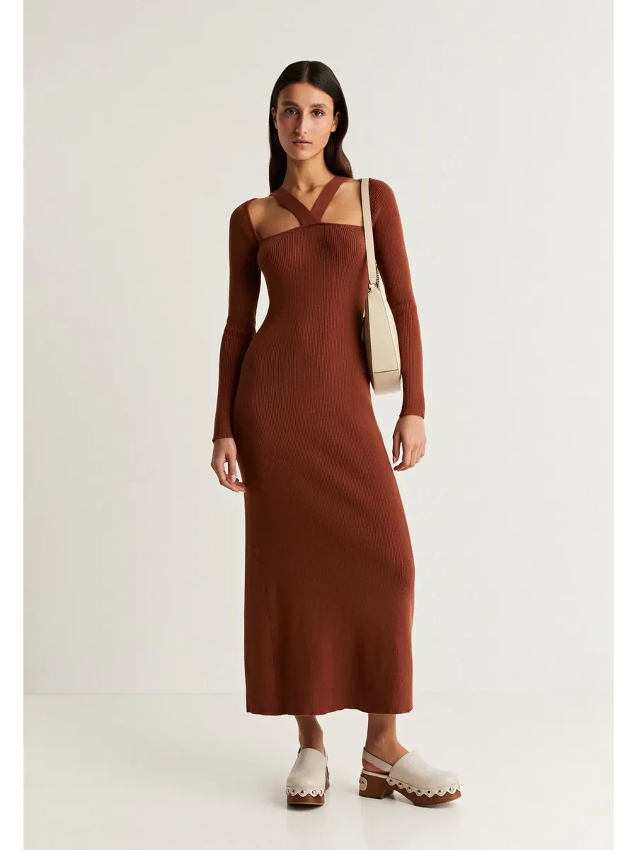 Трикотажное платье миди. Изготовлено из смеси волокон Slim fit Квадратный вырез и вырез лодочкой Длинный рукав