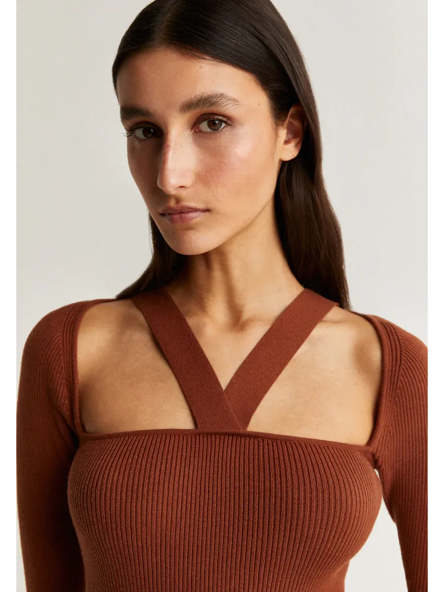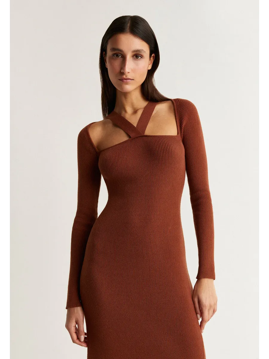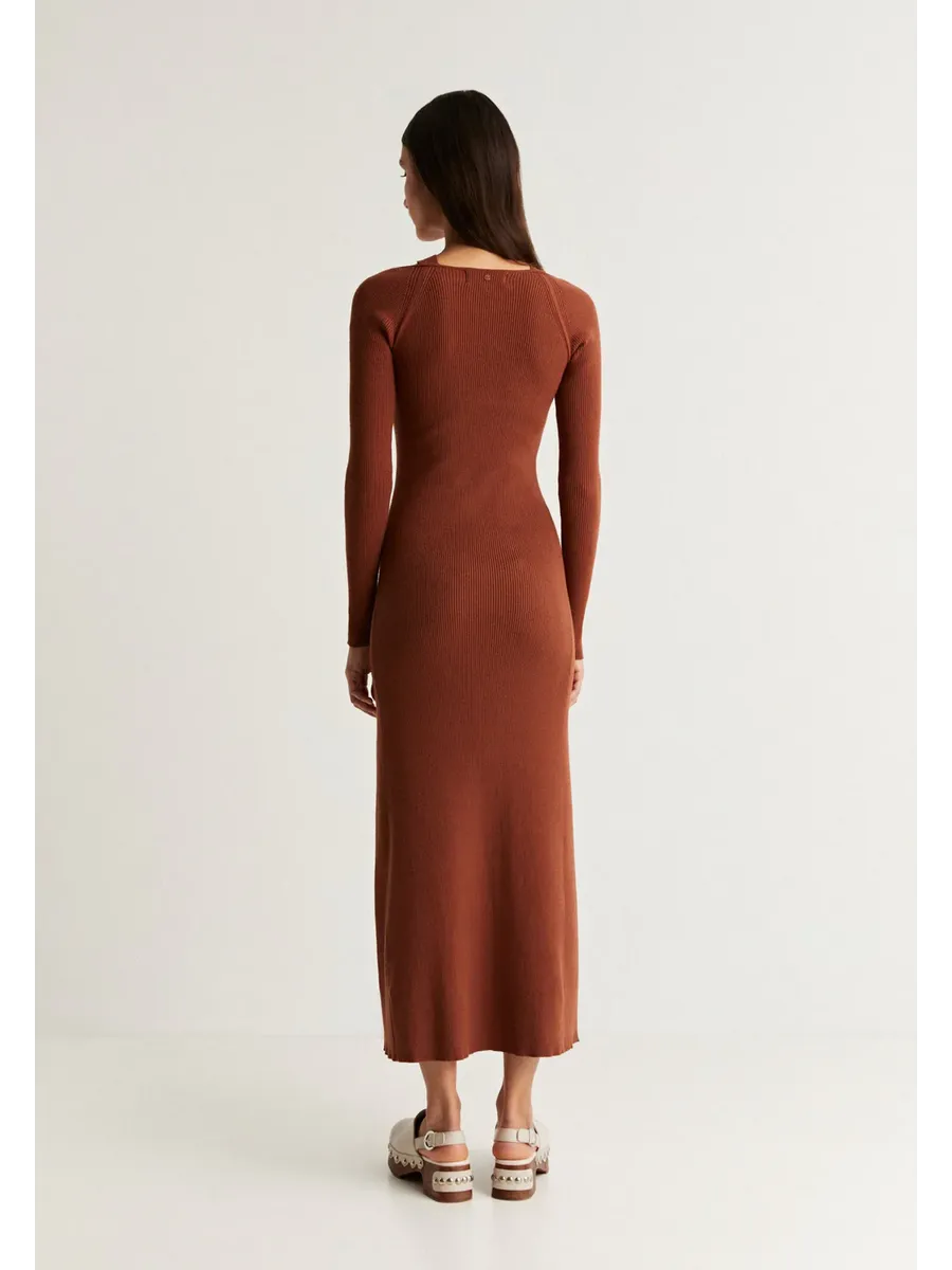 Трикотажное платье миди. Изготовлено из смеси волокон Slim fit Квадратный вырез и вырез лодочкой Длинный рукав