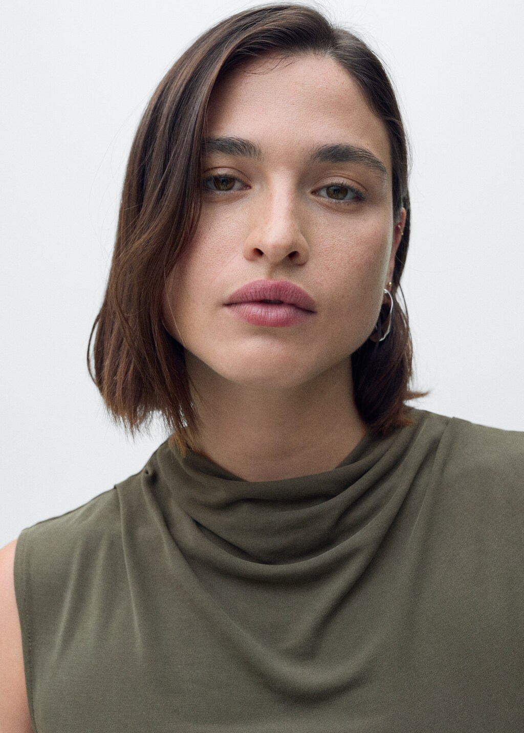 Платье из модала с драпированной горловиной от MANGO - это воплощение элегантности и стиля.