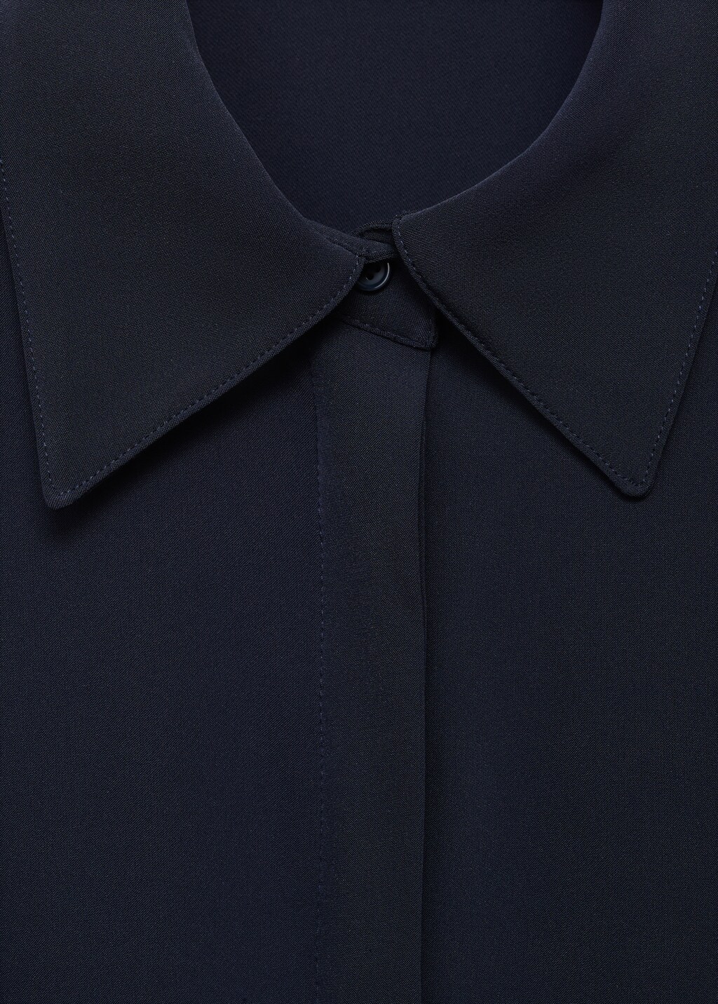 Платье-рубашка с ремешком представлено в морском синем цвете, который легко сочетается с различными аксессуарами и обувью.