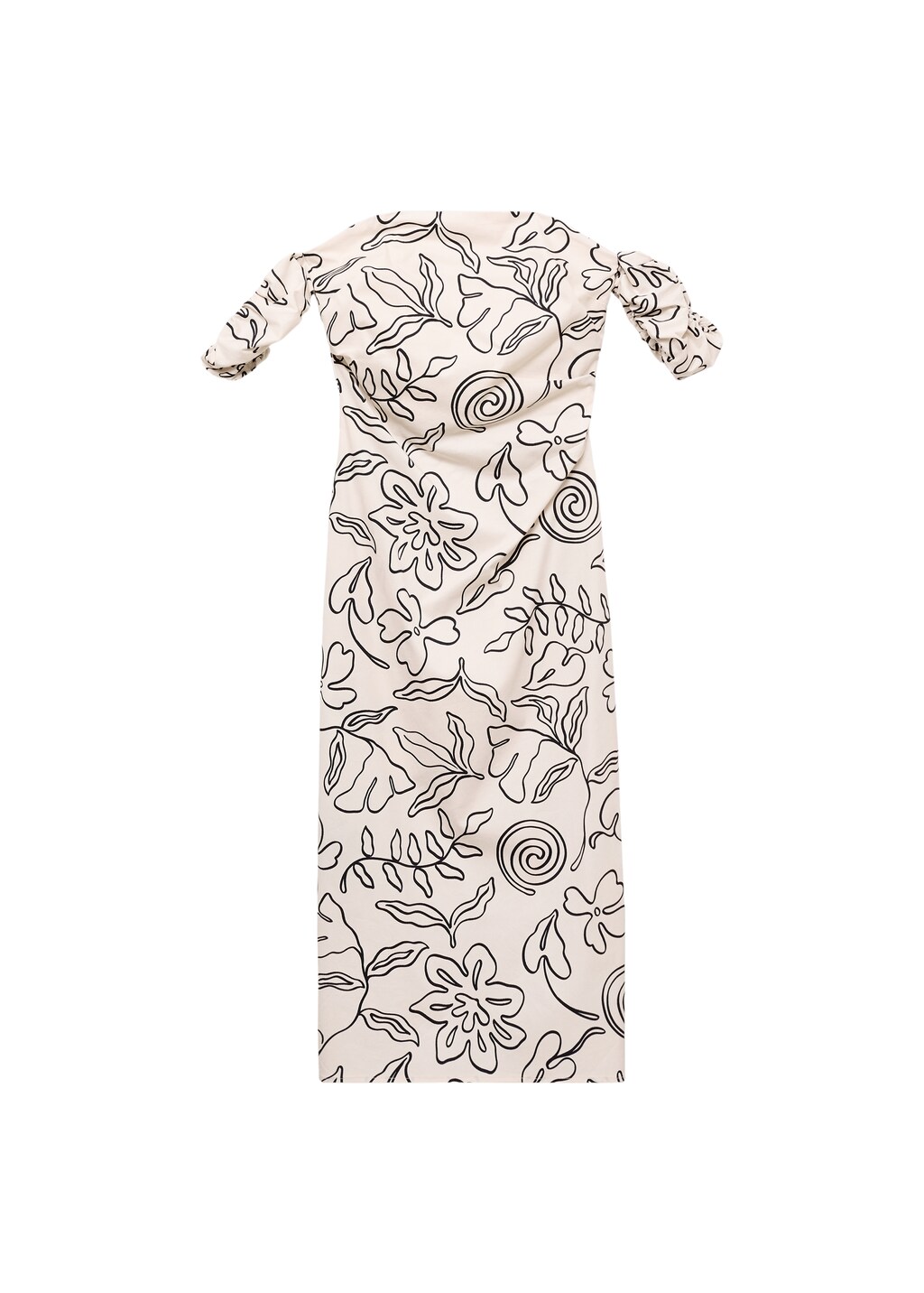 прямой крой, миди дизайн, цветочный принт, платье-бандо, короткие рукава-фонарики, внизу боковой разрез, боковая застежка-молния, внутренняя подкладка, этот предмет одежды является частью нашей коллекции повседневной одежды, созданной для того, чтобы сопровождать вас со стилем каждый день,, . внешняя длина: 95,5 cm . длина спины: 101,5 cm