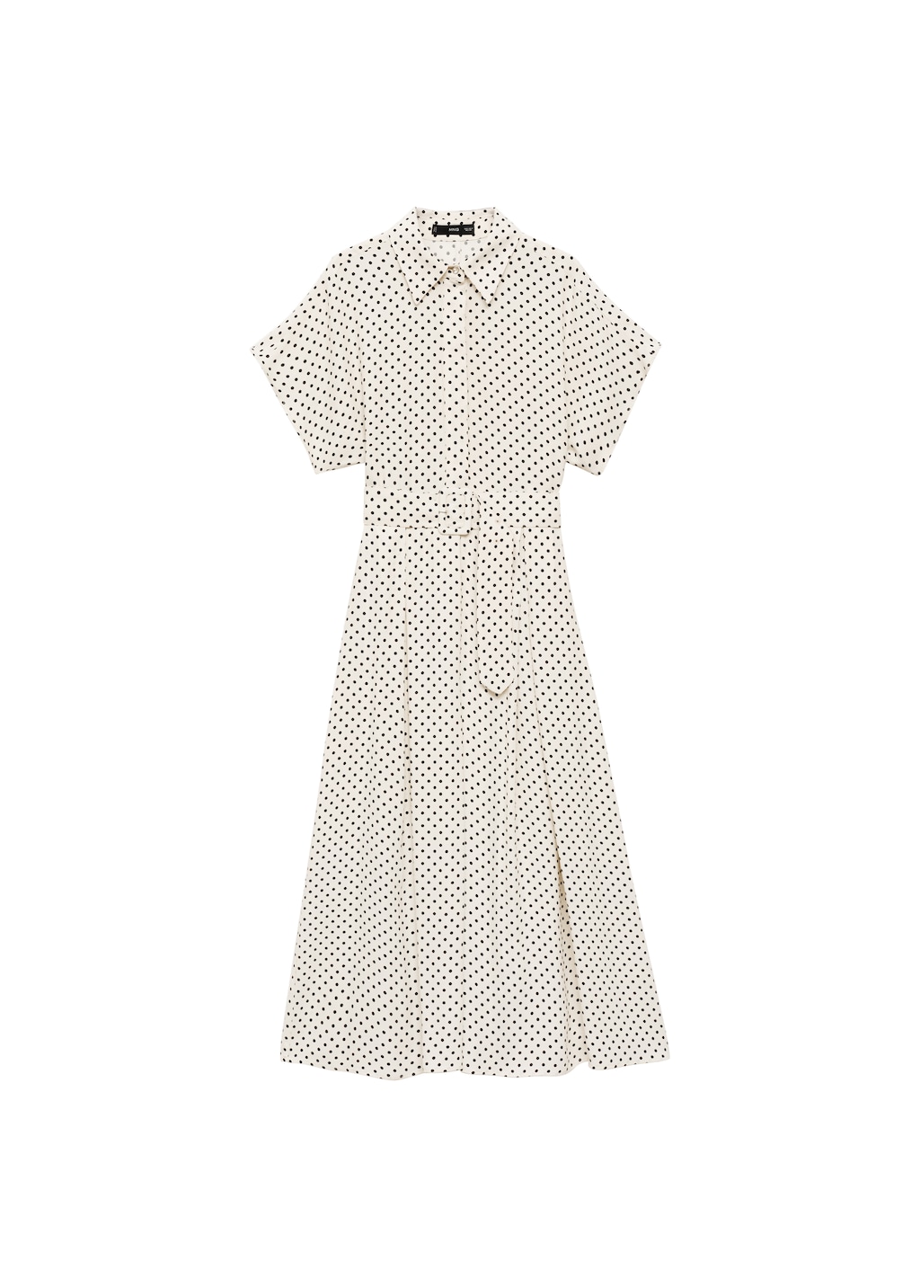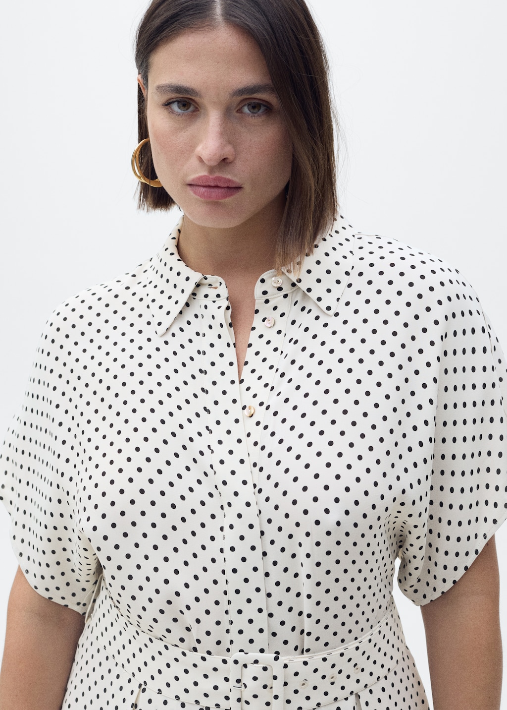 Платье в горошек с поясом от MANGO - это сочетание элегантности и комфорта.