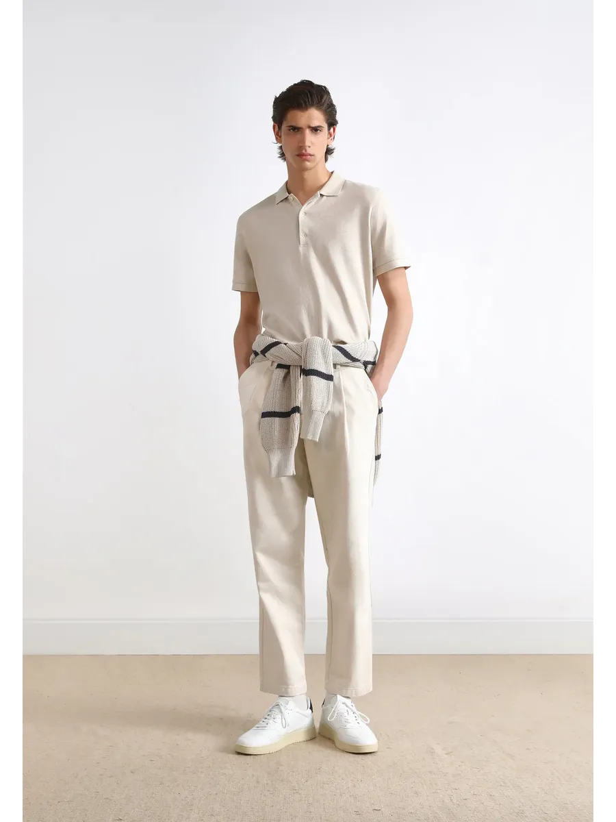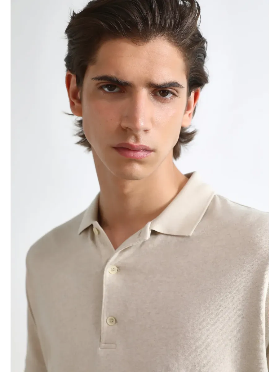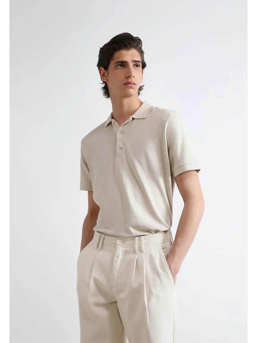 Рубашка поло из легкой ткани. Изготовлена из смеси хлопка и льна Обычная посадка Классический воротник Застежка на пуговицы Короткий рукав