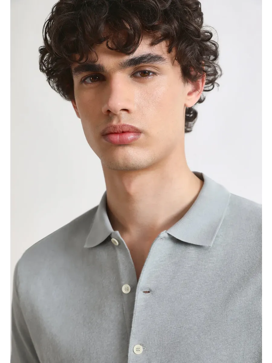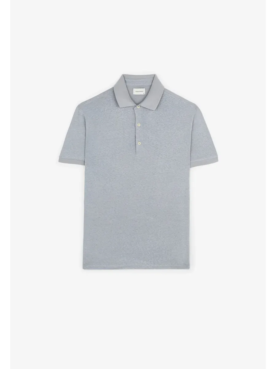 Рубашка поло из легкой ткани. Изготовлена из смеси хлопка и льна Обычная посадка Классический воротник Застежка на пуговицы Короткий рукав