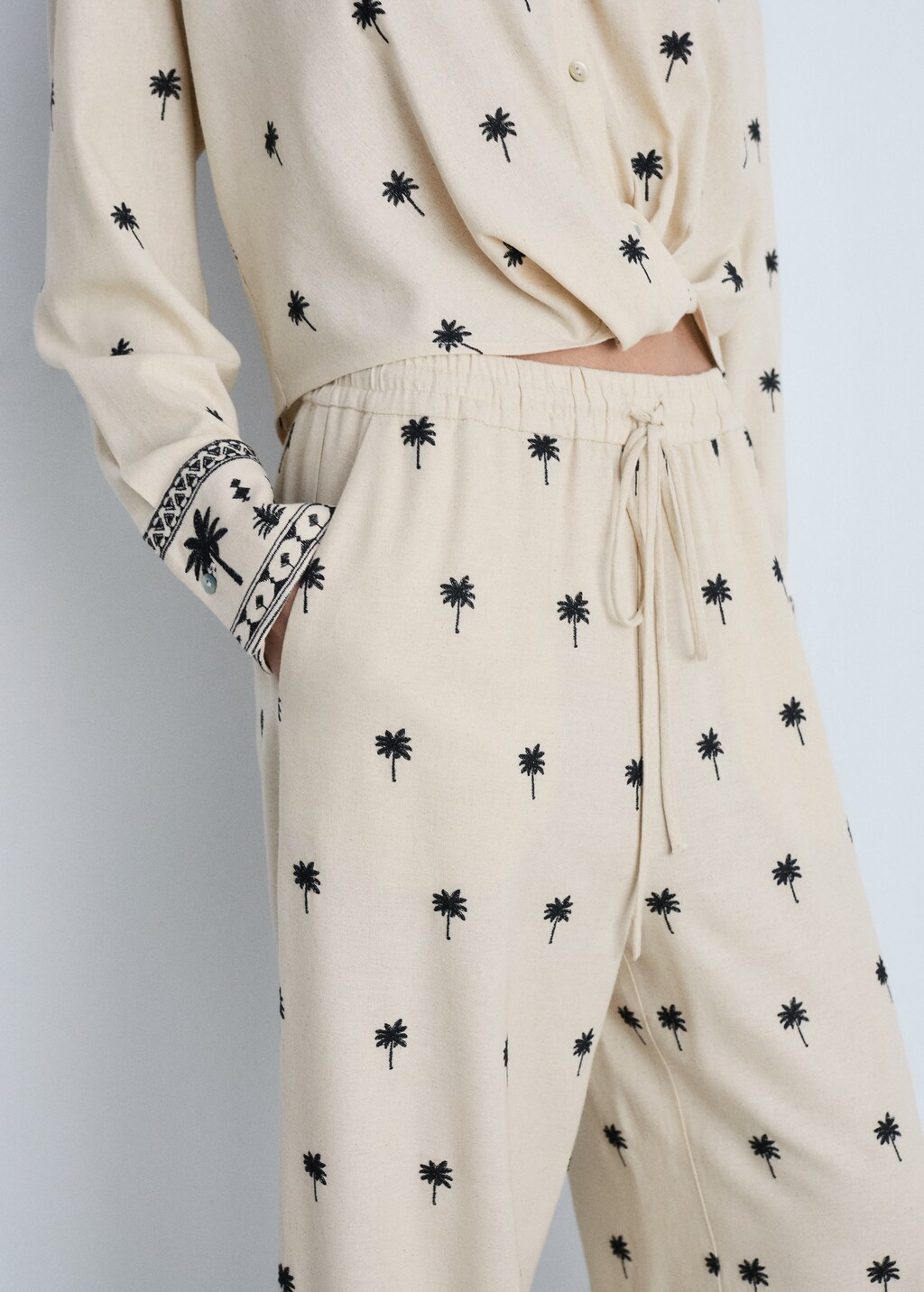 ткань из смеси льна, коллекция рамадан, вышитый узор, длинный дизайн, прямой крой, средняя посадка, регулируемый пояс, талия с эластичной резинкой, без застежки, total look,, . внутренняя длина: 75,0 cm . внешняя длина: 105,5 cm