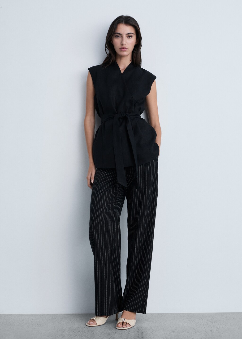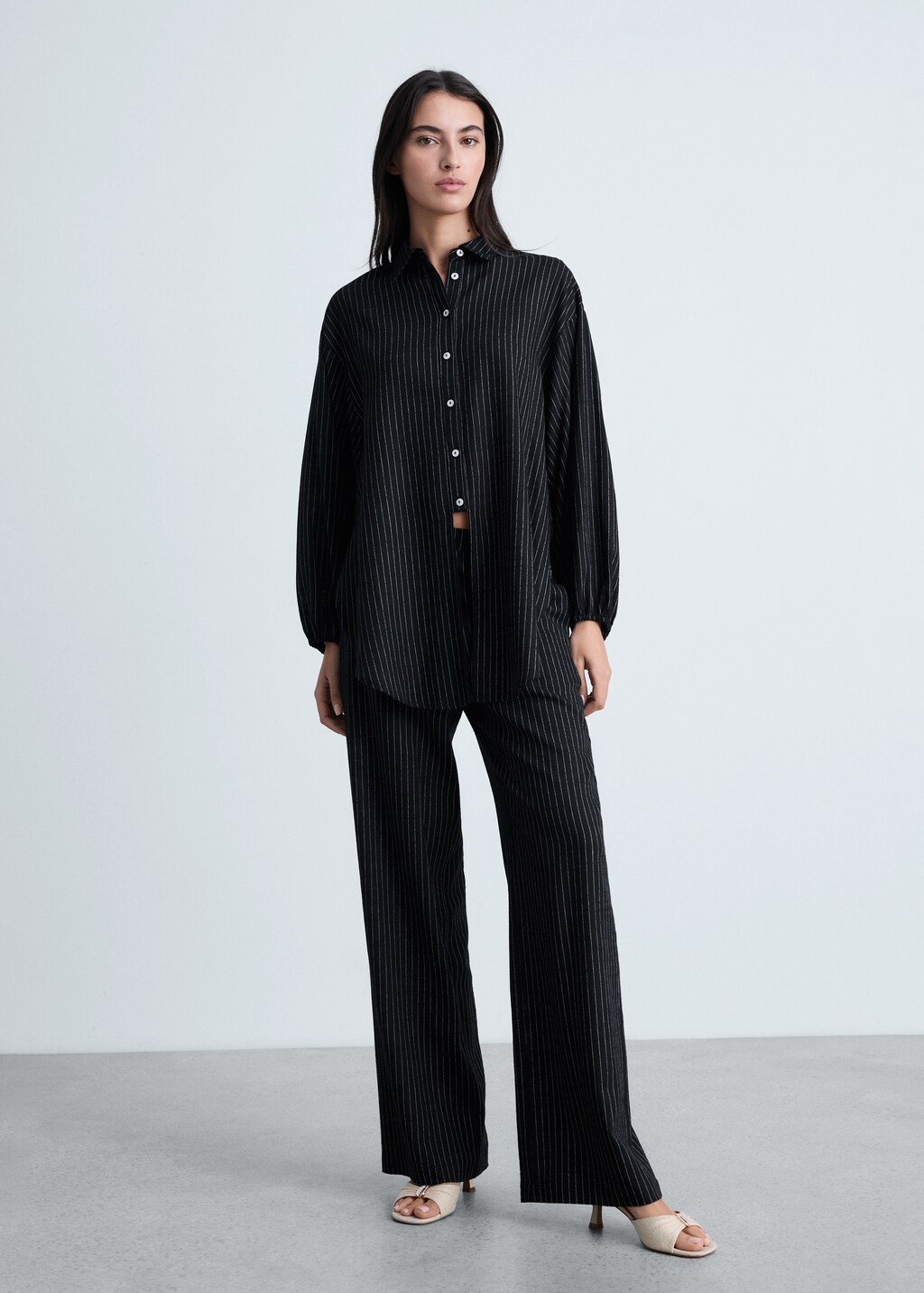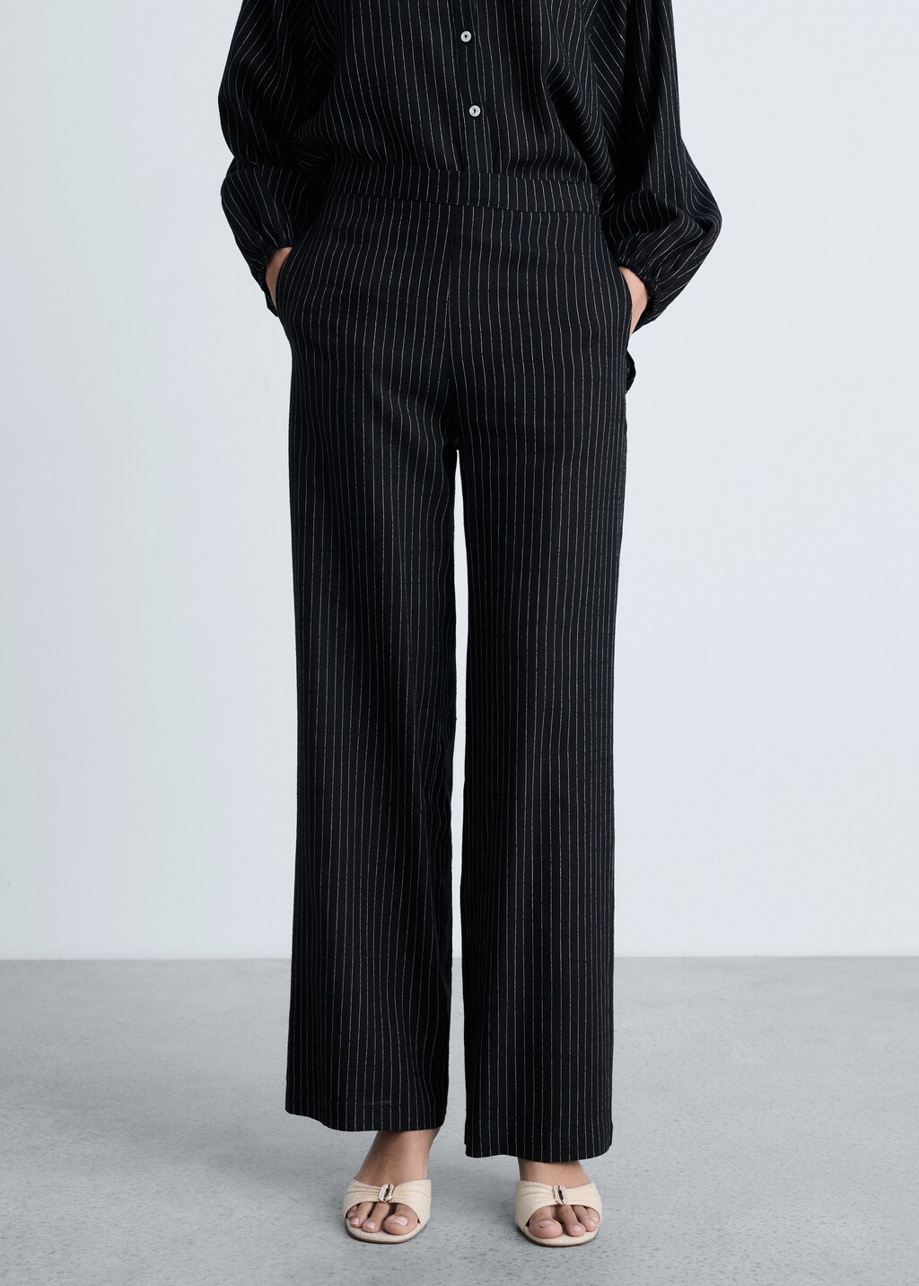 ткань из смеси льна, прямой крой, длинный дизайн, принт в полоску, средняя посадка, застежка-молния сзади, total look,, . внутренняя длина: 77,5 cm . внешняя длина: 107,0 cm