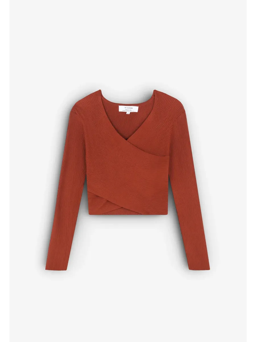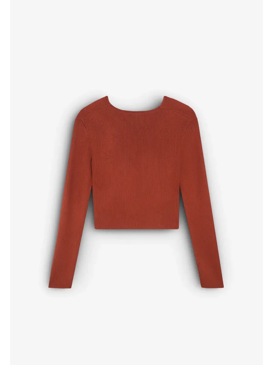 Укороченный трикотажный топ в рубчик. Изготовлен из смеси волокон Slim fit V-образный вырез Длинный рукав