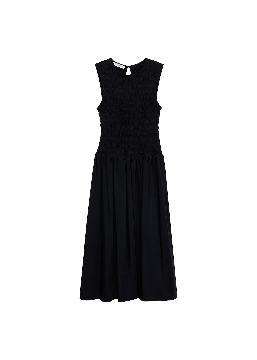 Расклешенное платье с жатым лифом от MANGO - это воплощение стиля и комфорта.