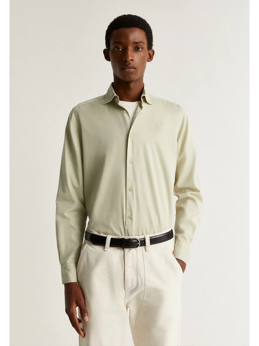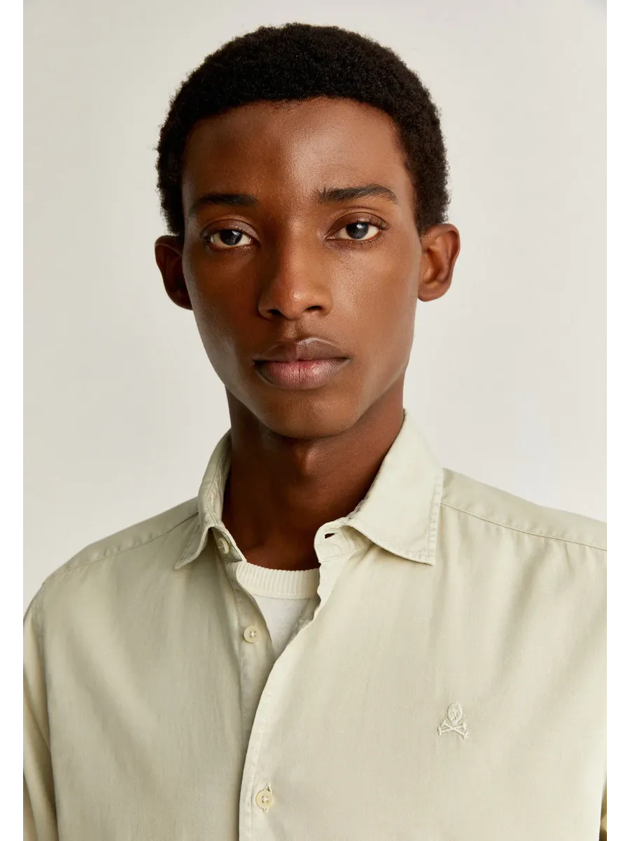 Рубашка череп с вышивкой на груди в тон. 100% хлопок Regular fit Воротник итальянский Длинный рукав