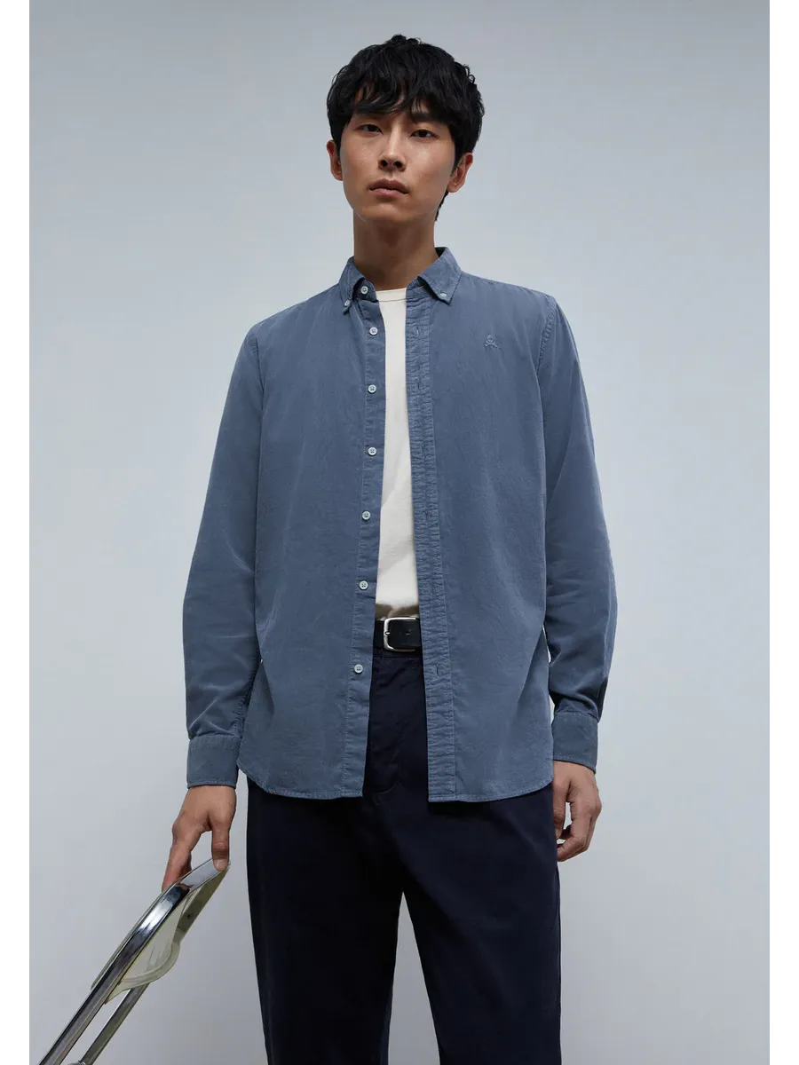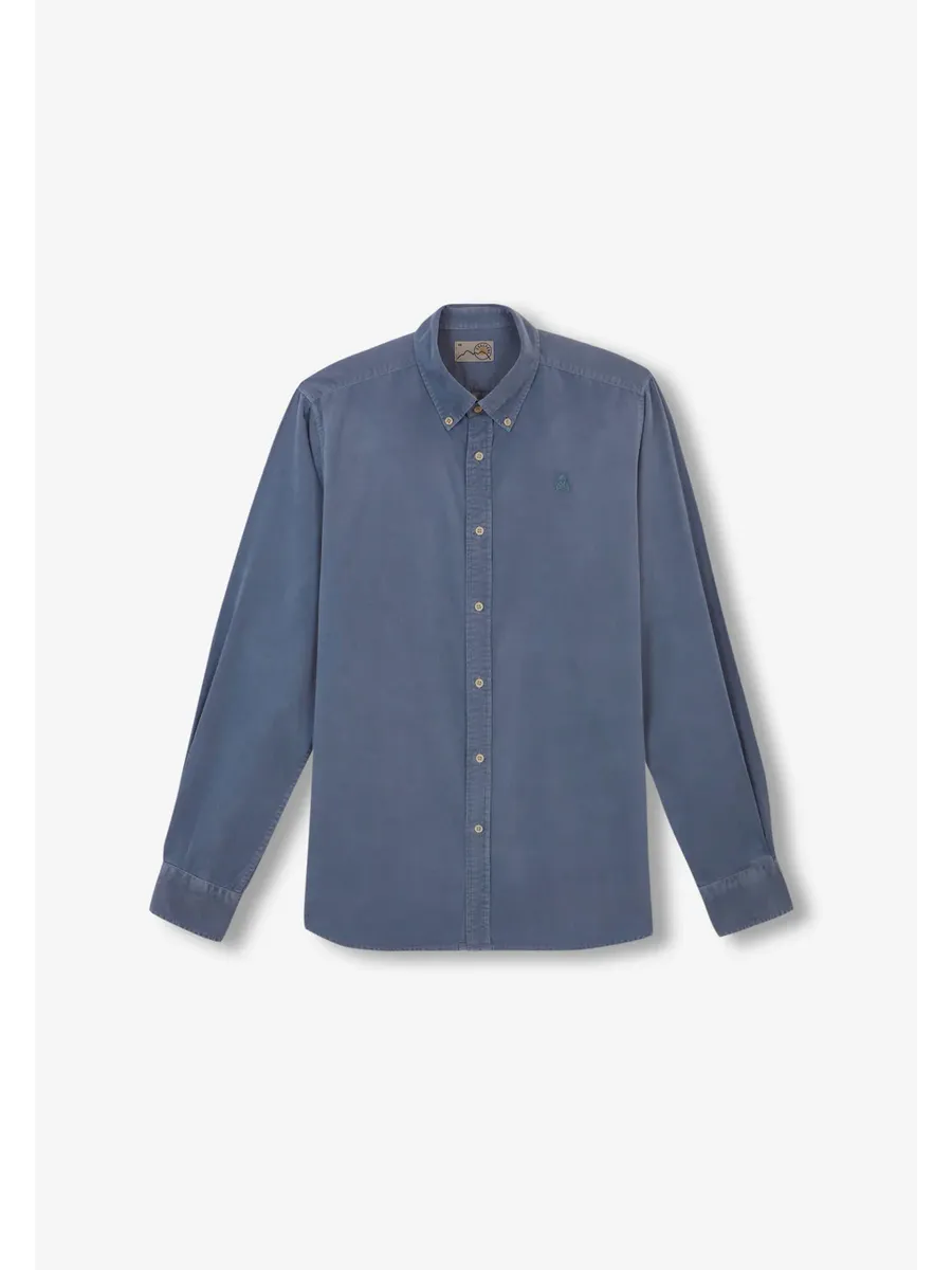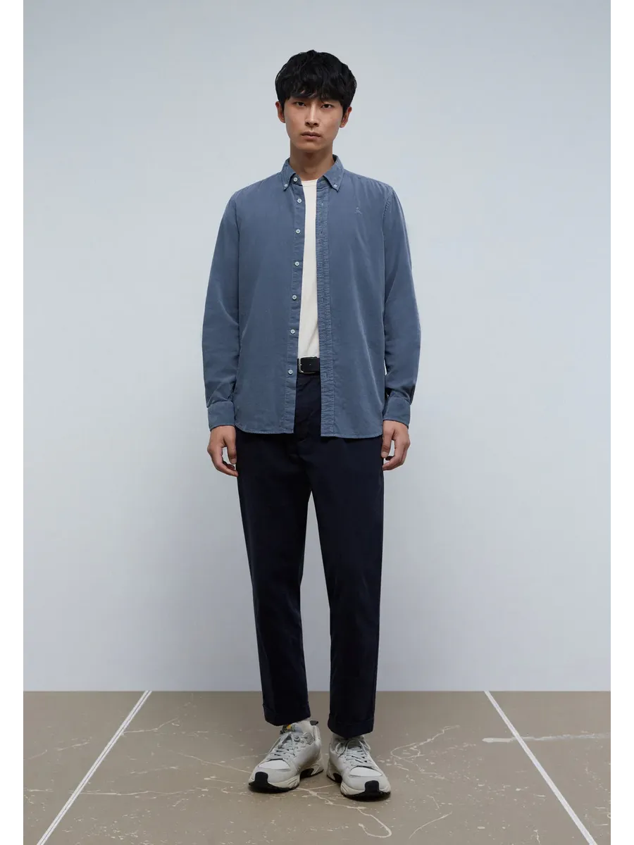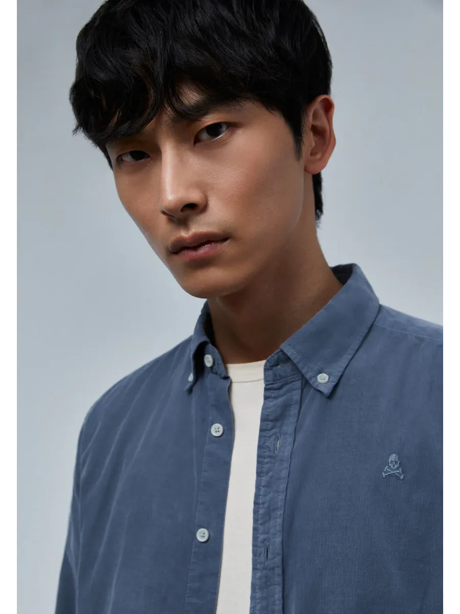Вельветовая рубашка с вышитым черепом в тон Изготовлена из 100% органического хлопка Обычная посадка Воротник на пуговицах Застежка на пуговицы Длинный рукав с манжетами и пуговицами