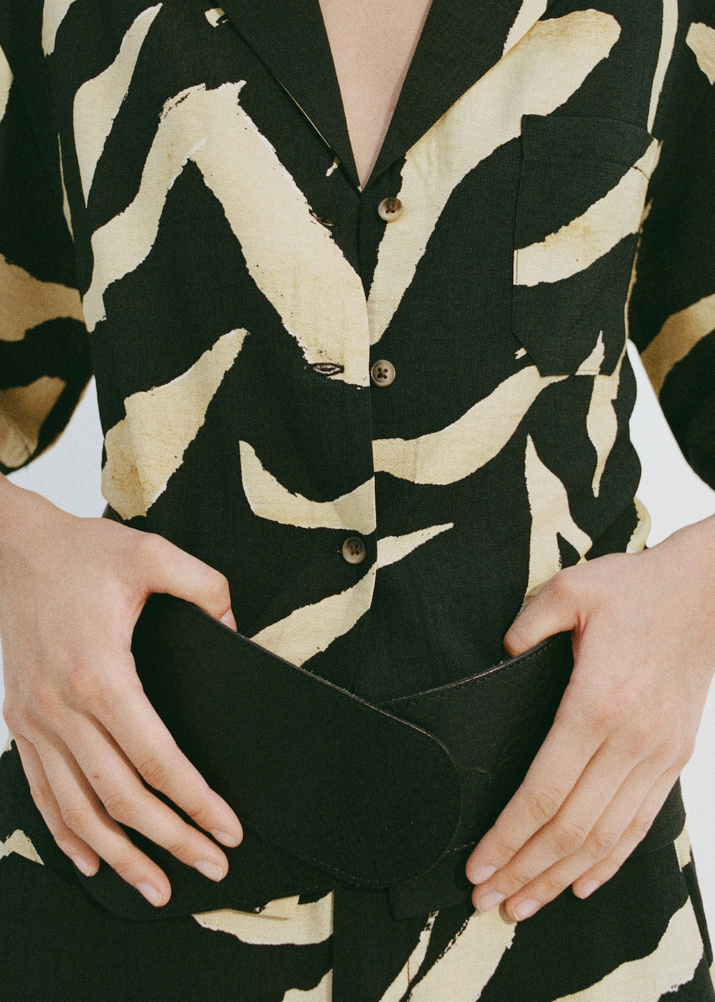Короткие рукава делают рубашку удобной для ношения в теплую погоду, а оригинальный принт добавляет индивидуальности и стиля.
