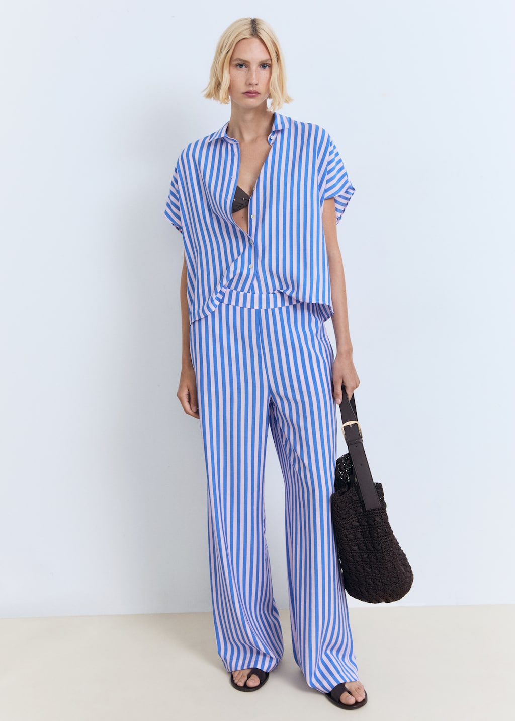 Рубашка с короткими рукавами в полоску от MANGO - стильный и комфортный выбор для вашего гардероба.