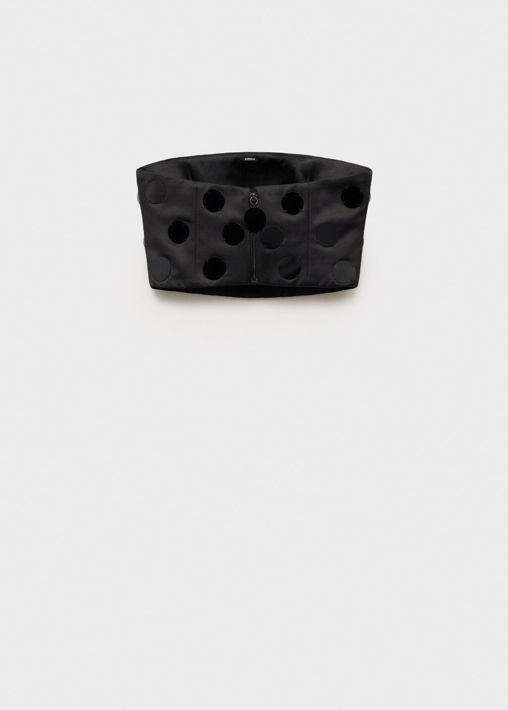 Застежка на молнию сзади обеспечивает удобство при надевании. Укороченный фасон делает топ идеальным для сочетания с юбками и брюками с высокой талией.