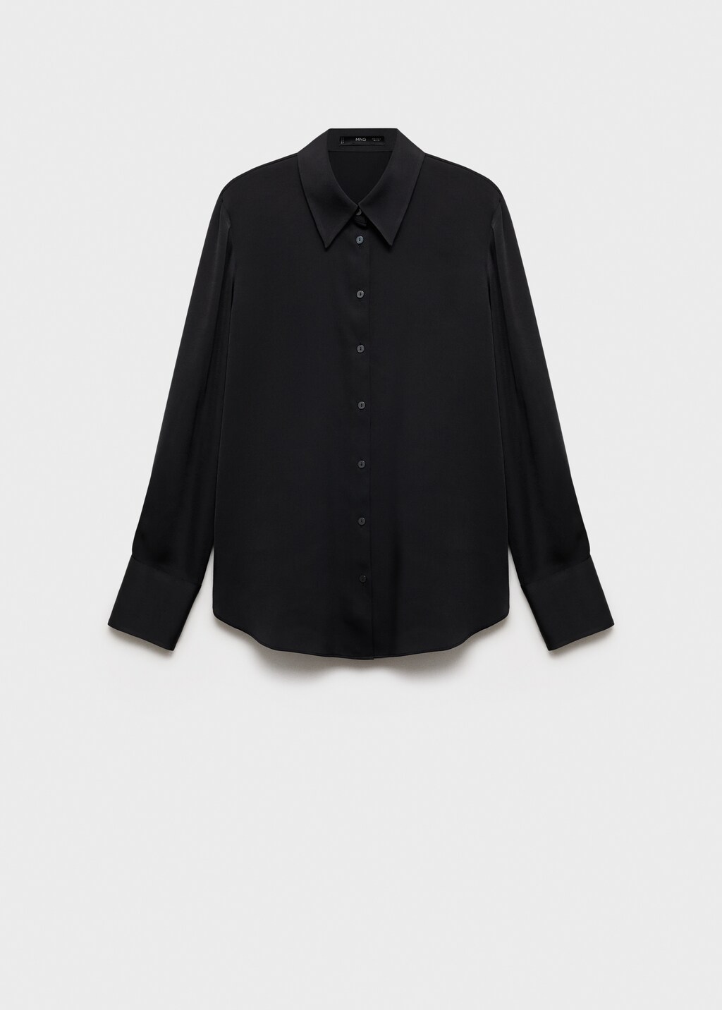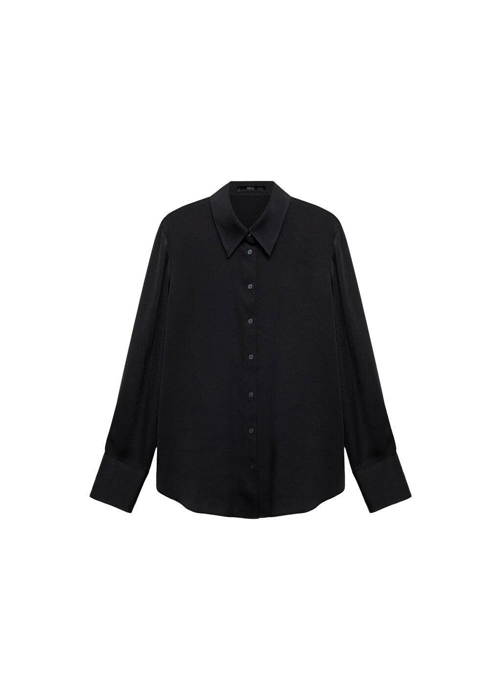 Струящаяся рубашка с атласным блеском от MANGO - это стильный и элегантный выбор для взрослых.