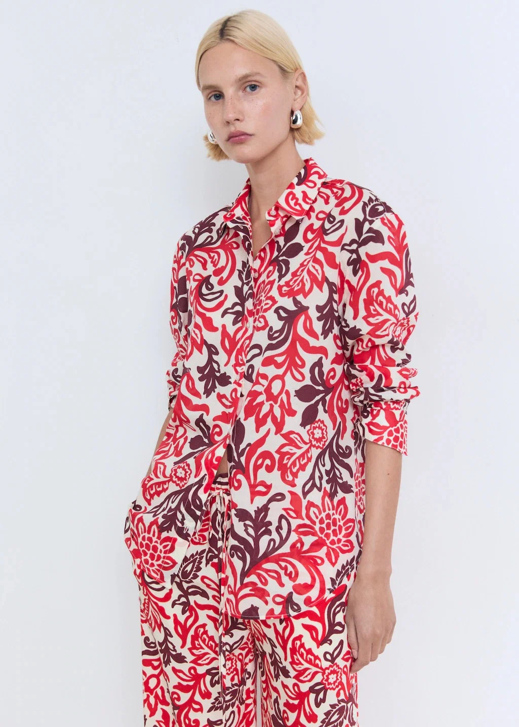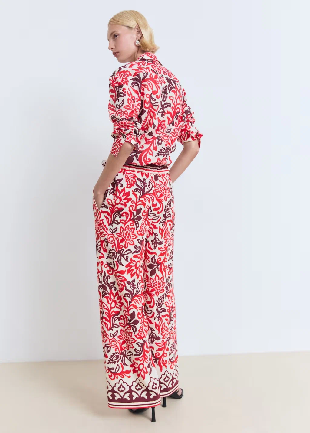 Струящиеся брюки с принтом от MANGO — это изысканный и удобный элемент для повседневного и делового стиля. Брюки выполнены из лёгкой струящейся ткани, что позволяет им сохранять форму и оставаться удобными даже в жаркую погоду.