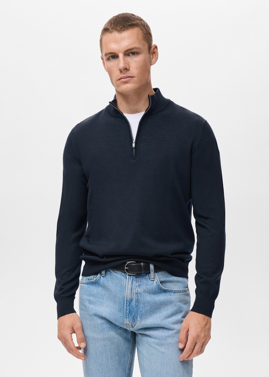 прямой крой, 100% шерсть мериноса, тонкий трикотаж, воротник перкинс с застежкой-молнией, воротник, манжеты и низ с отделкой в рубчик, модель ростом 190 см носит размер m,, . длина спины: 67,0 cm