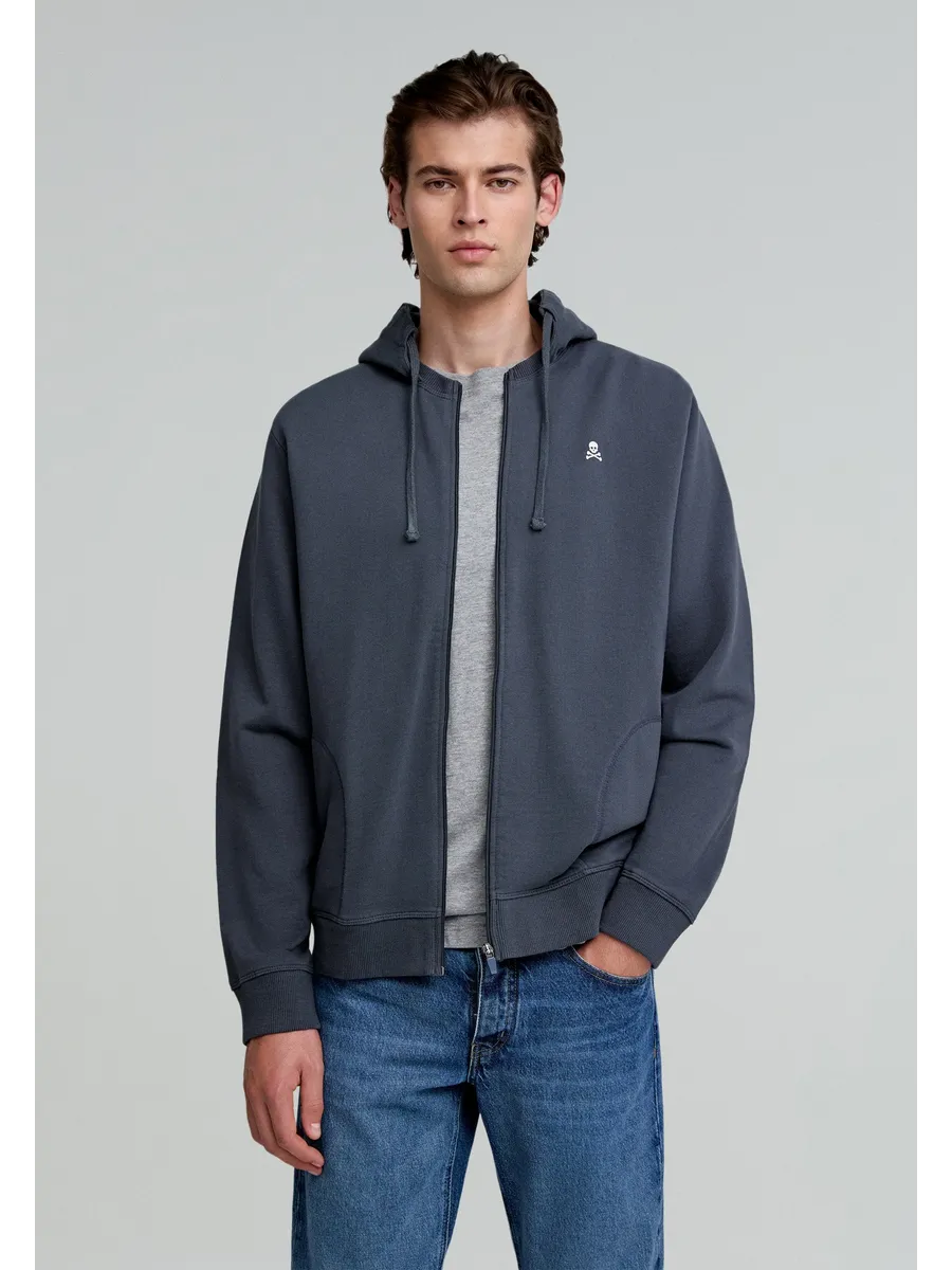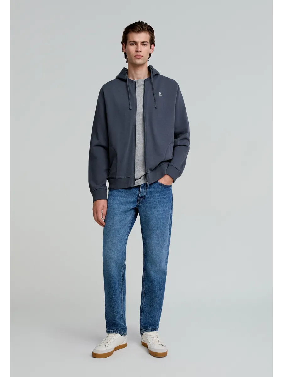 Минималистичная толстовка на молнии из базовой коллекции для мужчин из гладкой ткани с длинными рукавами, поможет создать элегантные и благородные образы на каждый день. Классический базовый крой толстовки с резинками на манжетах и по низу изделия делает эту модель идеальной на разные случаи жизни.