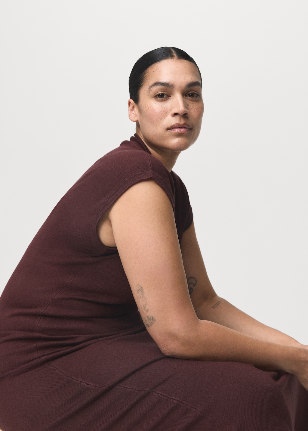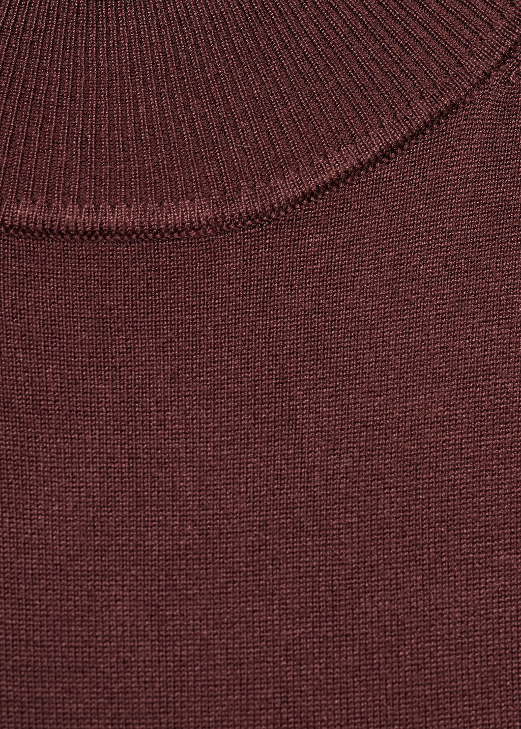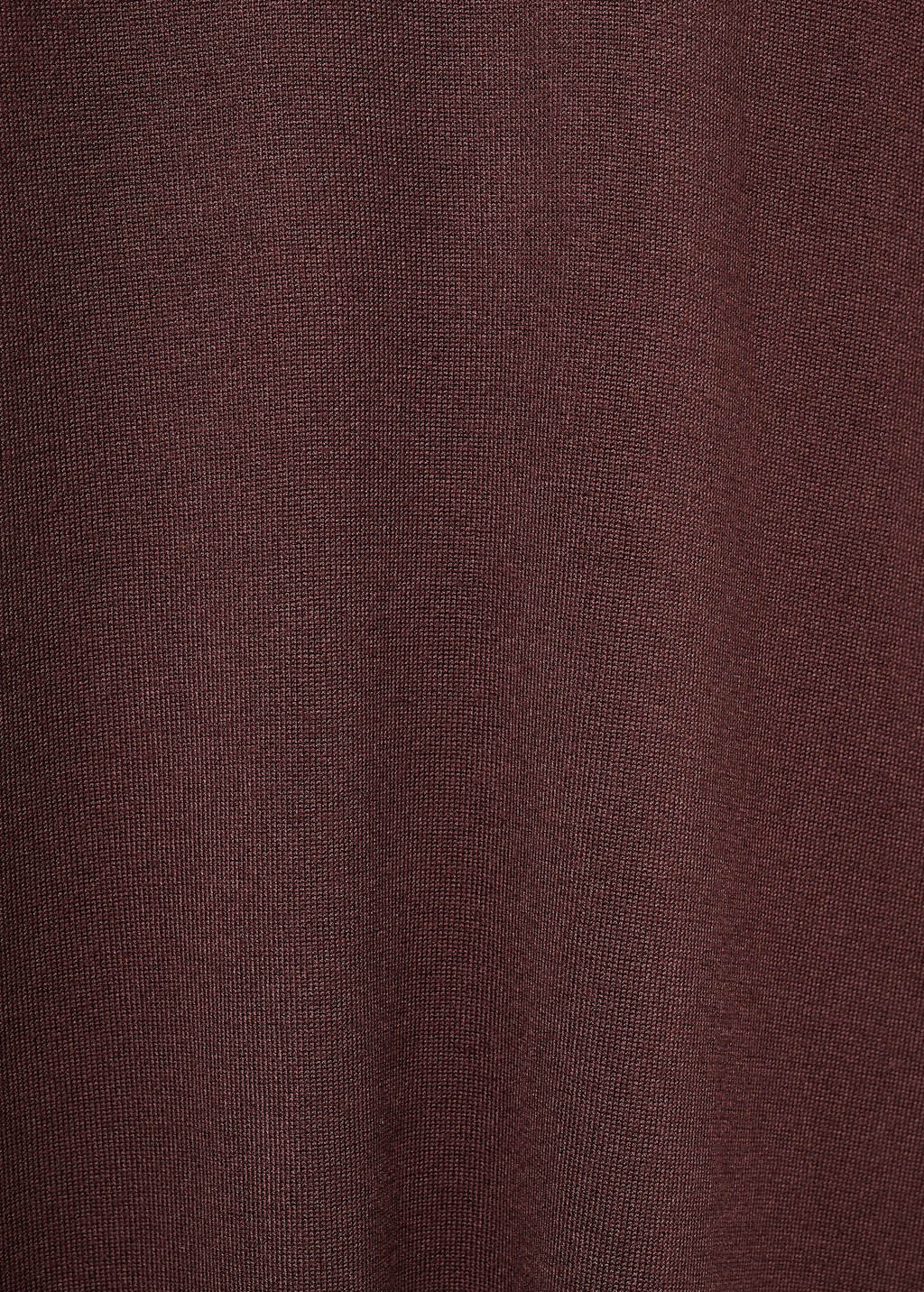 Платье представлено в темно-красном цвете, который легко сочетается с различными аксессуарами и обувью.