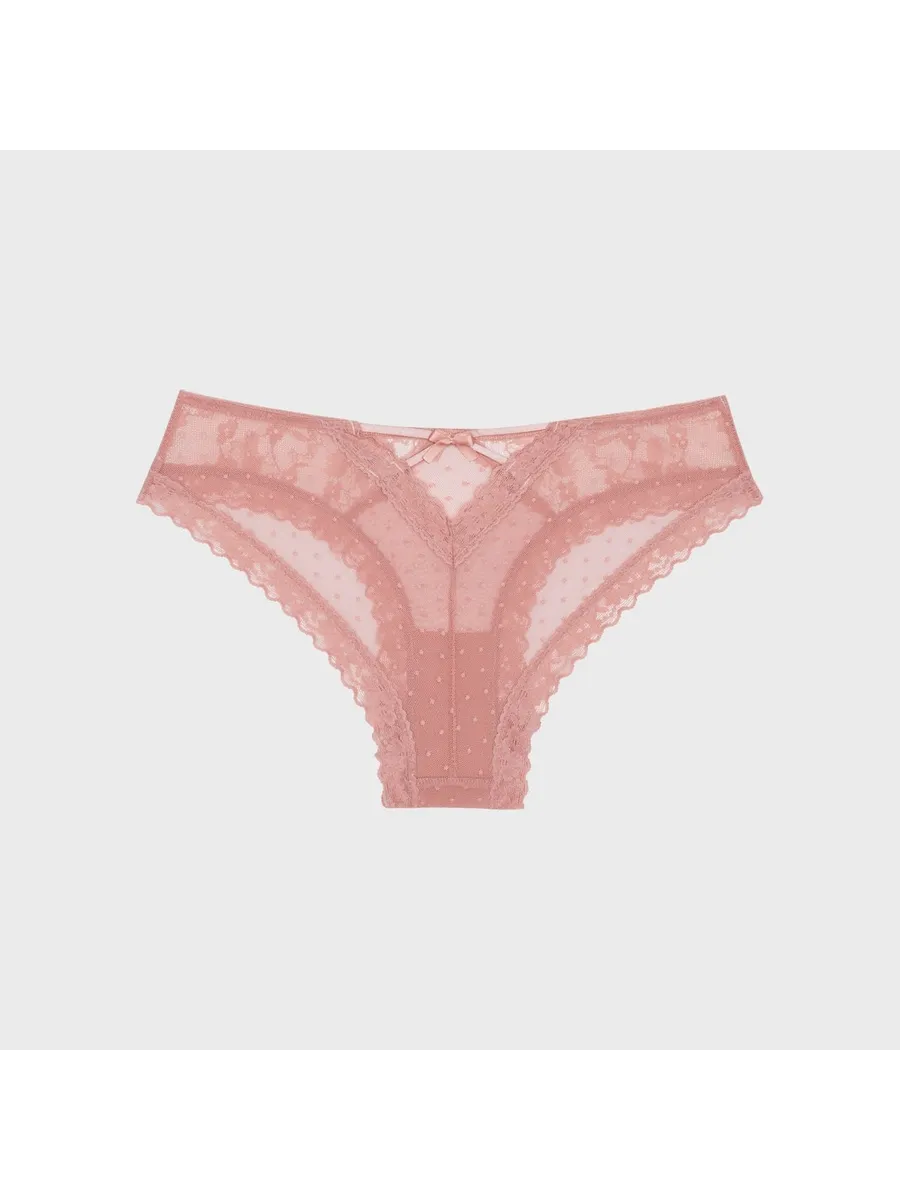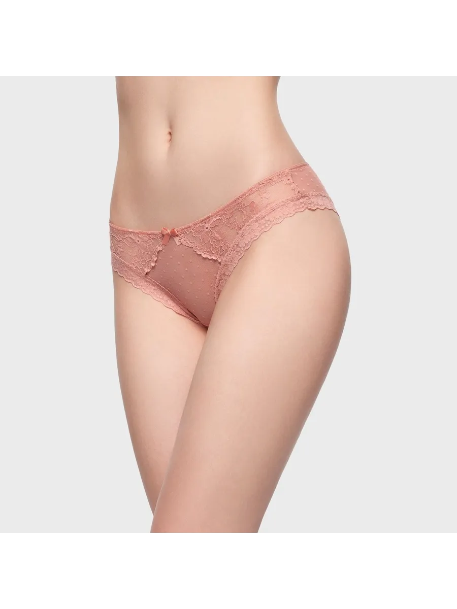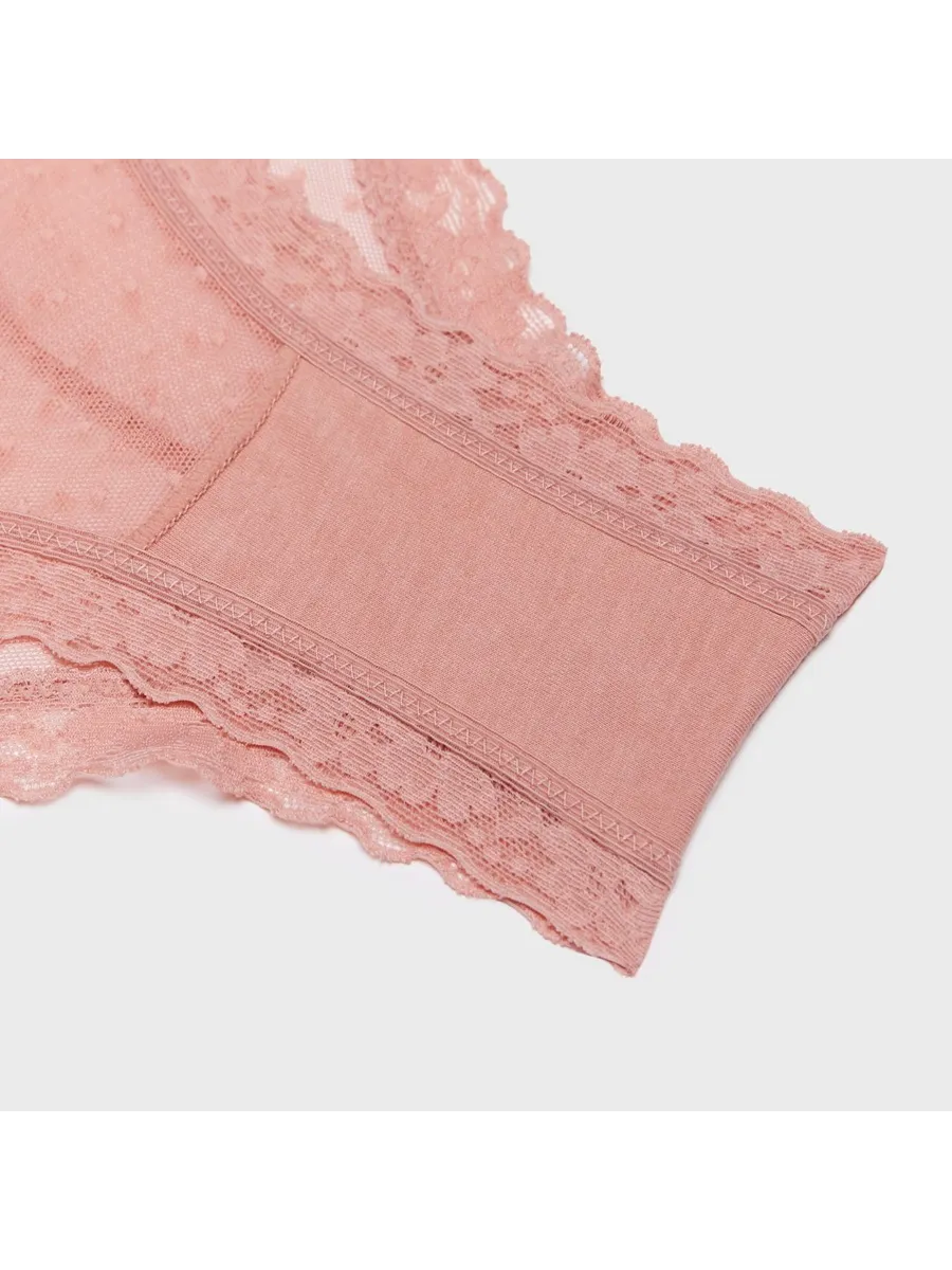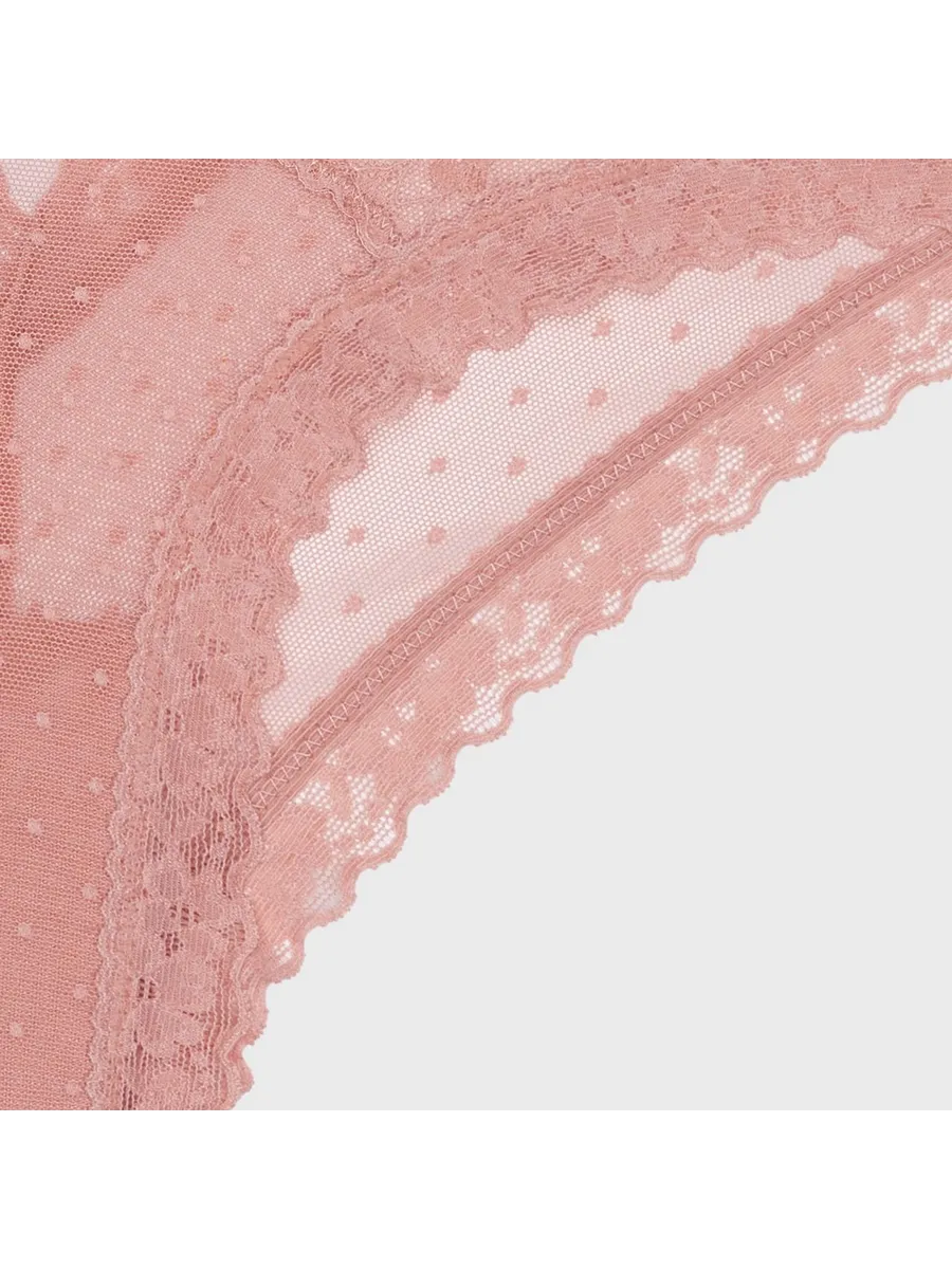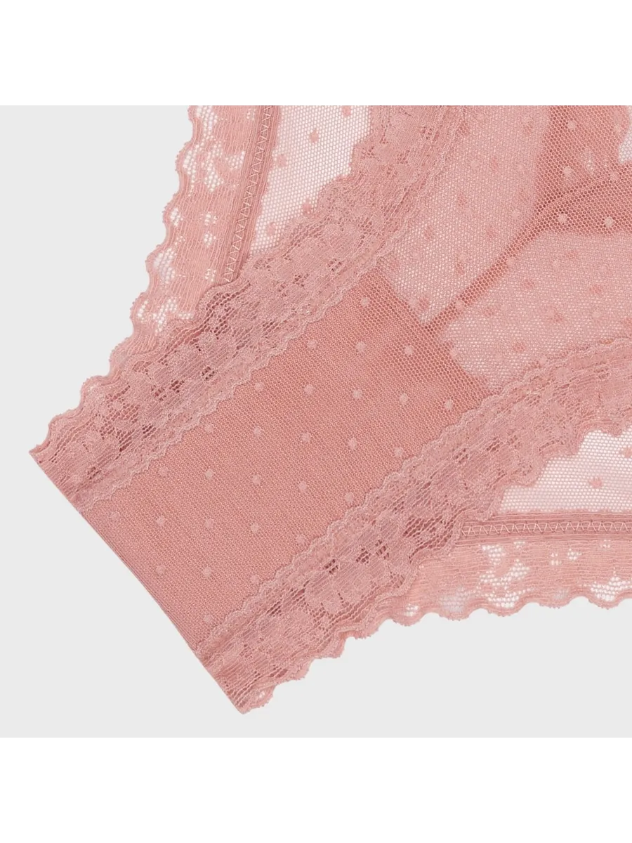 Трусы женские Secret Crush представляют собой сочетание комфорта и стиля. Они выполнены в розовом цвете с принтом в горошек и декорированы кружевом, что придает им изысканный и женственный вид.