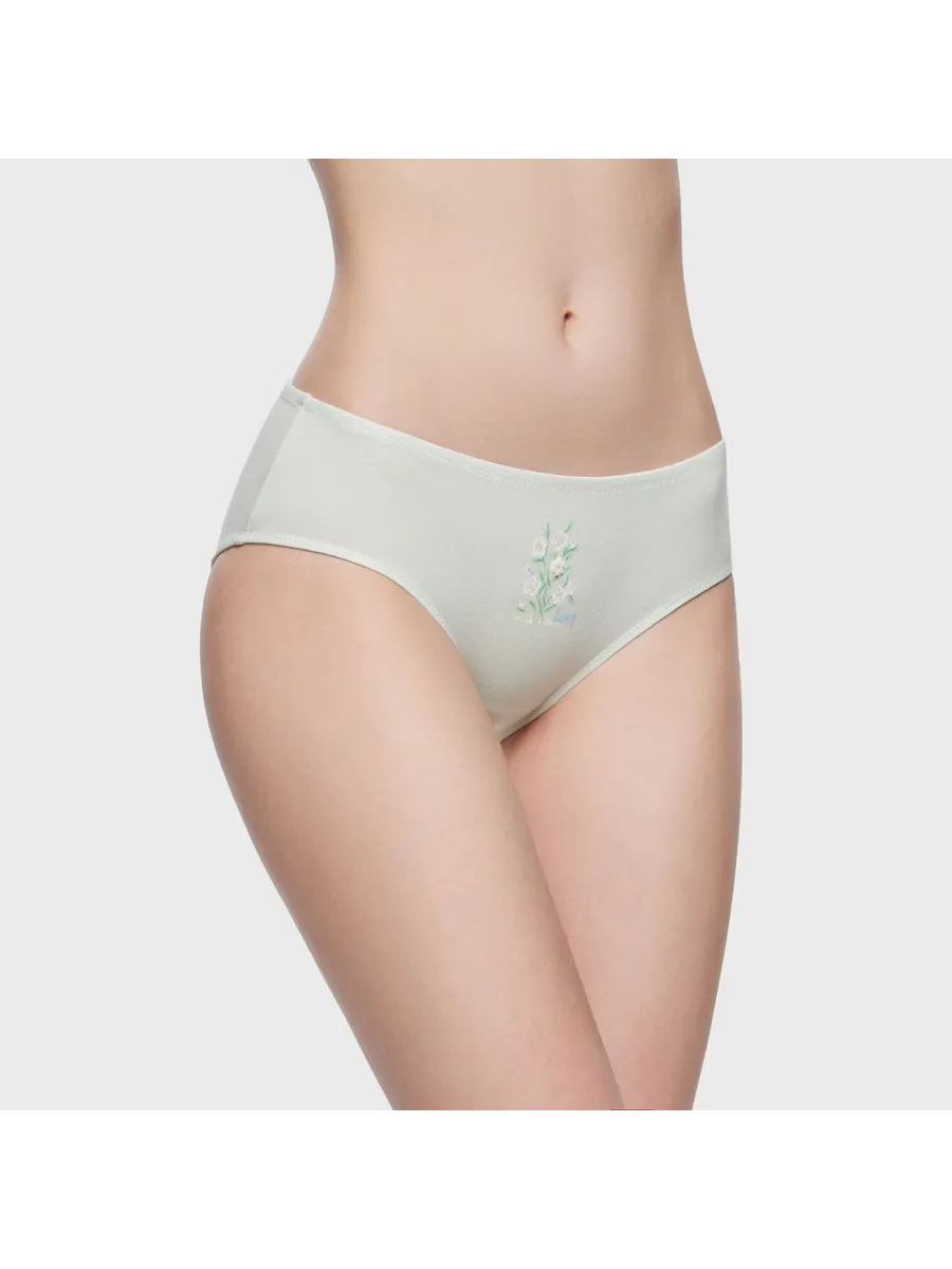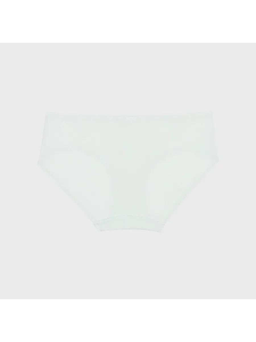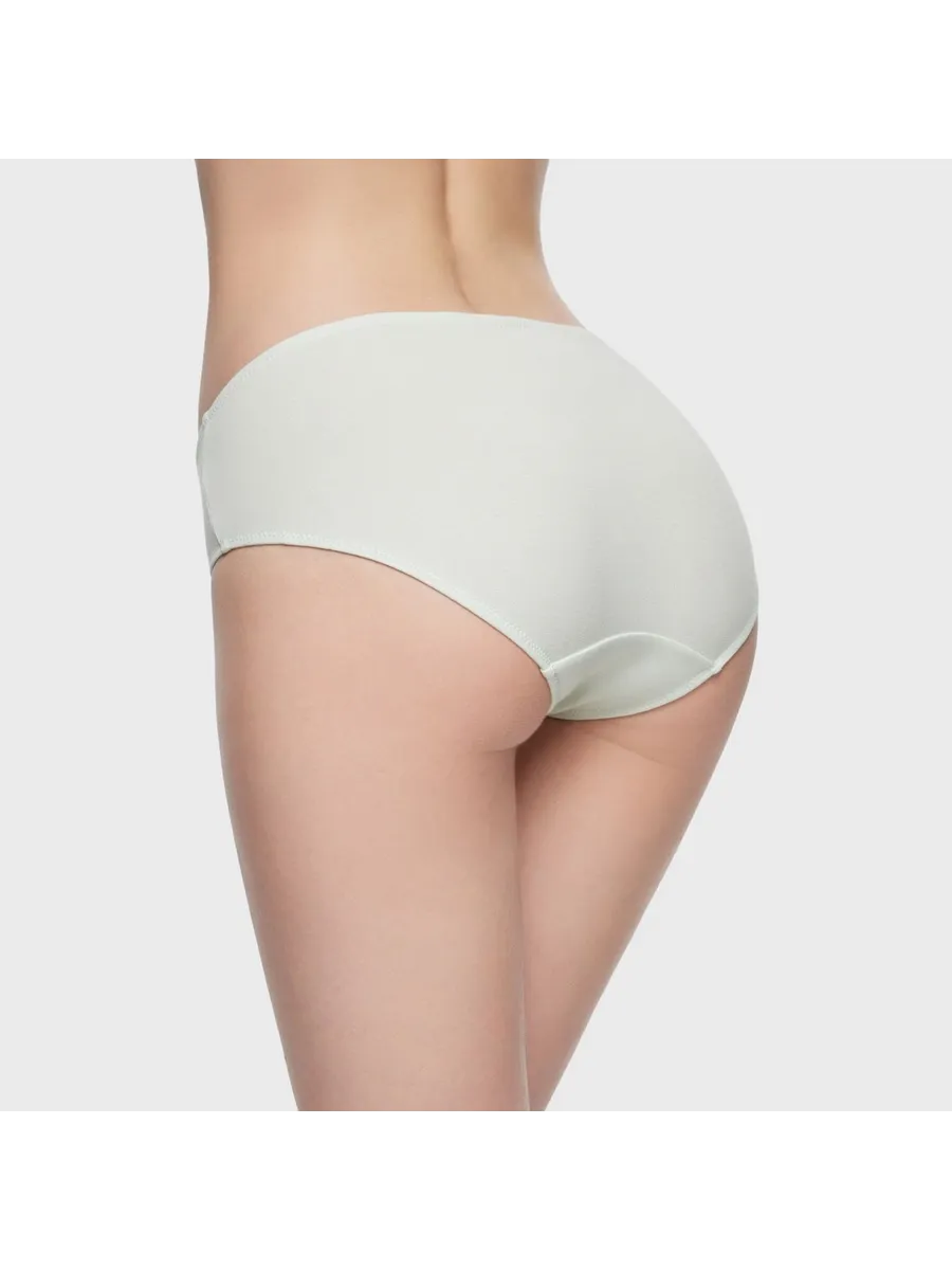 Трусы выполнены в зеленом цвете, который легко сочетается с различными элементами гардероба. Отсутствие принта позволяет носить их с любой одеждой, а заниженная линия талии подчеркивает женственность фигуры.