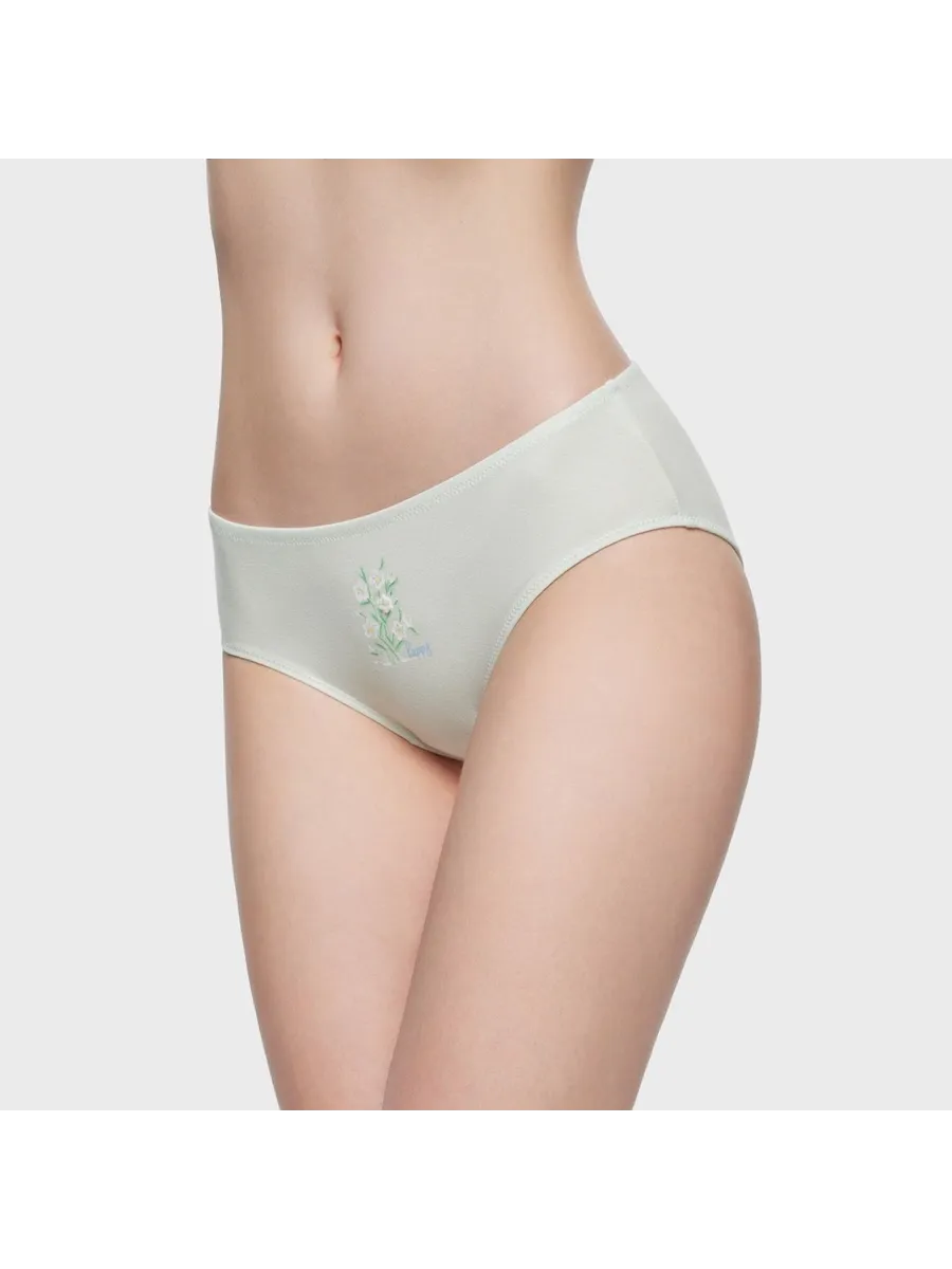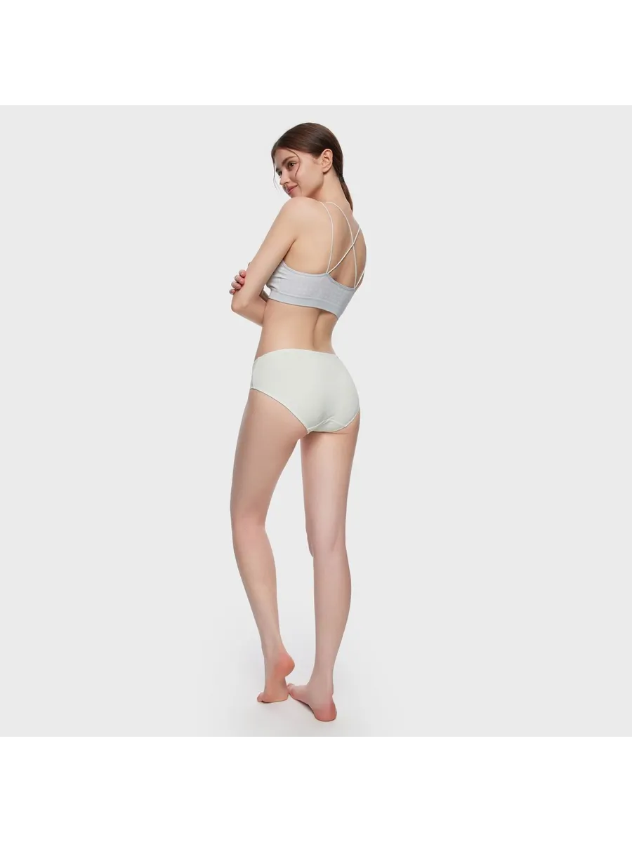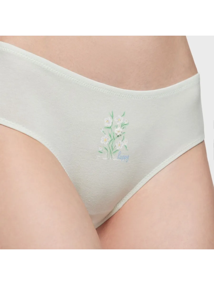 Трусы выполнены в зеленом цвете, который легко сочетается с различными элементами гардероба. Отсутствие принта позволяет носить их с любой одеждой, а заниженная линия талии подчеркивает женственность фигуры.