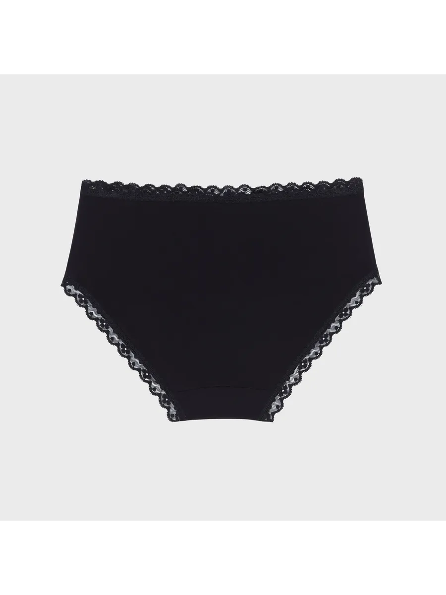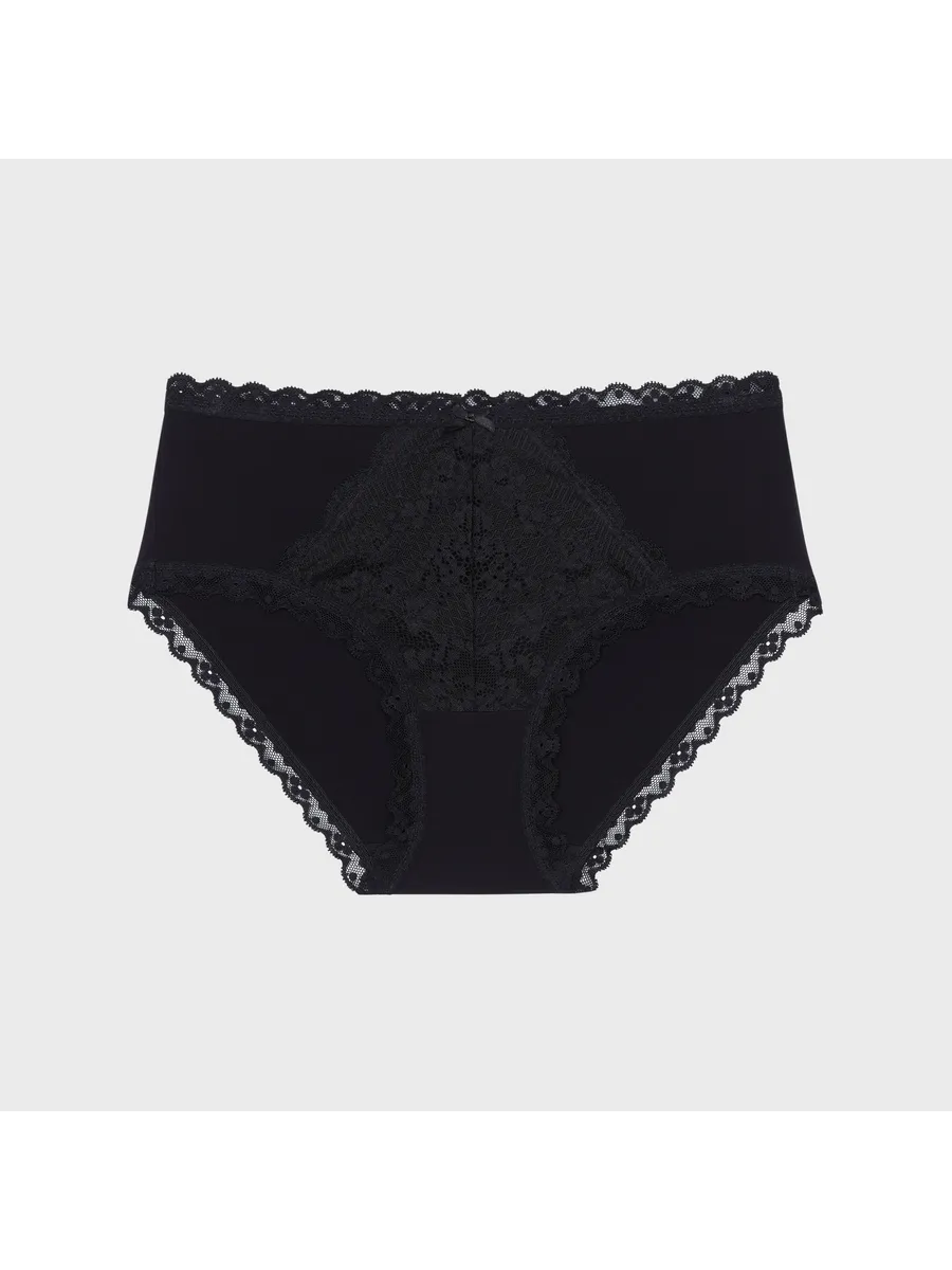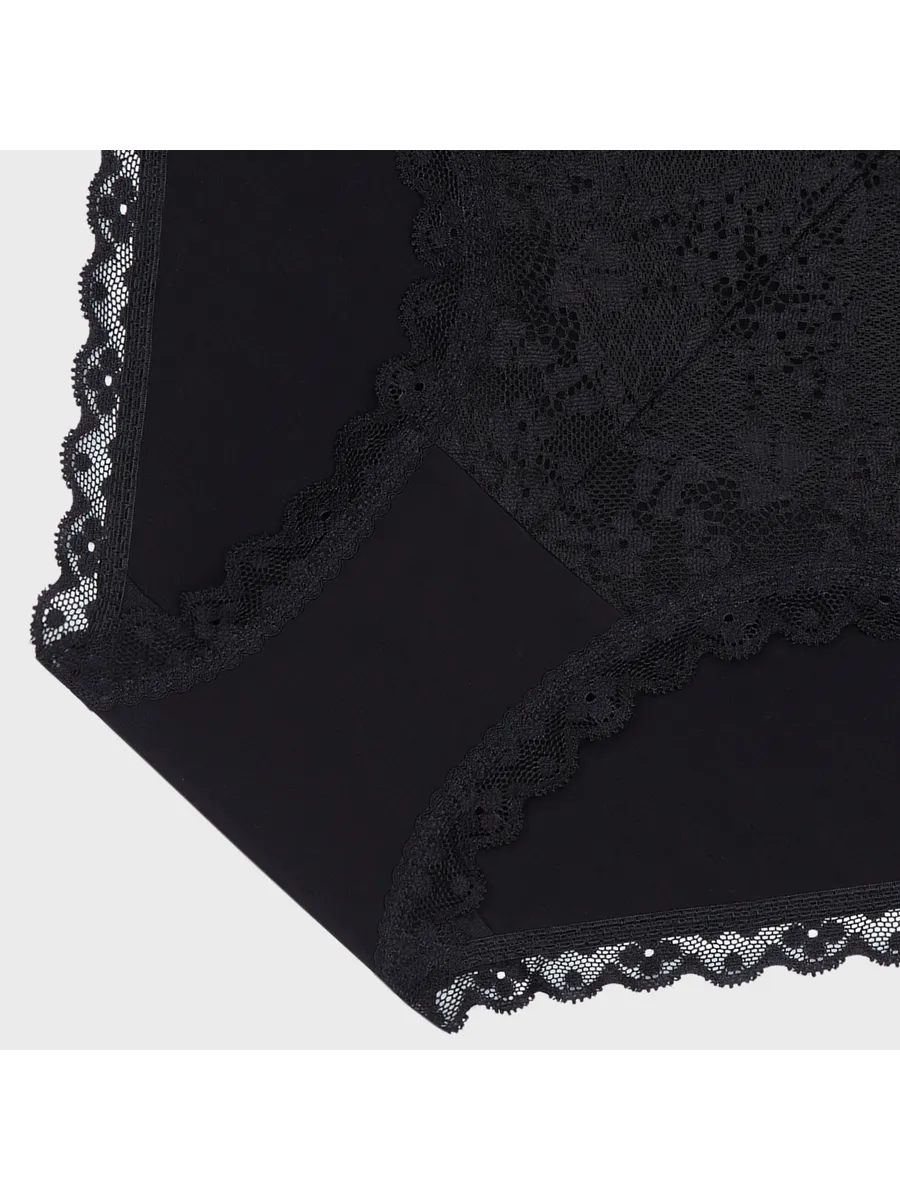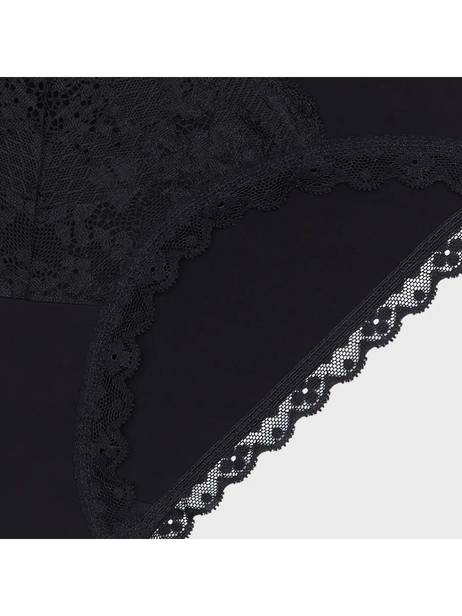 Трусы украшены кружевом, которое добавляет изысканности и элегантности. Отсутствие принта делает модель более сдержанной и классической.
