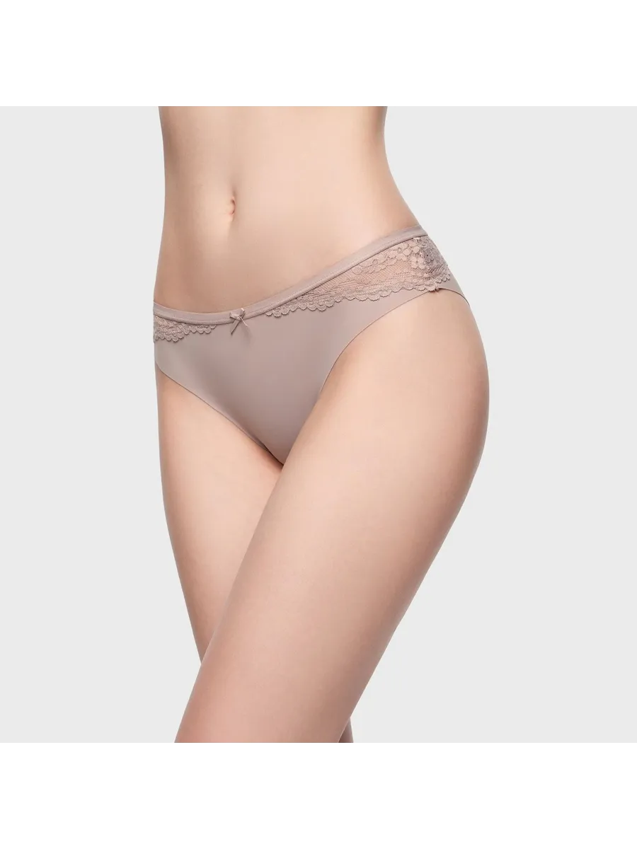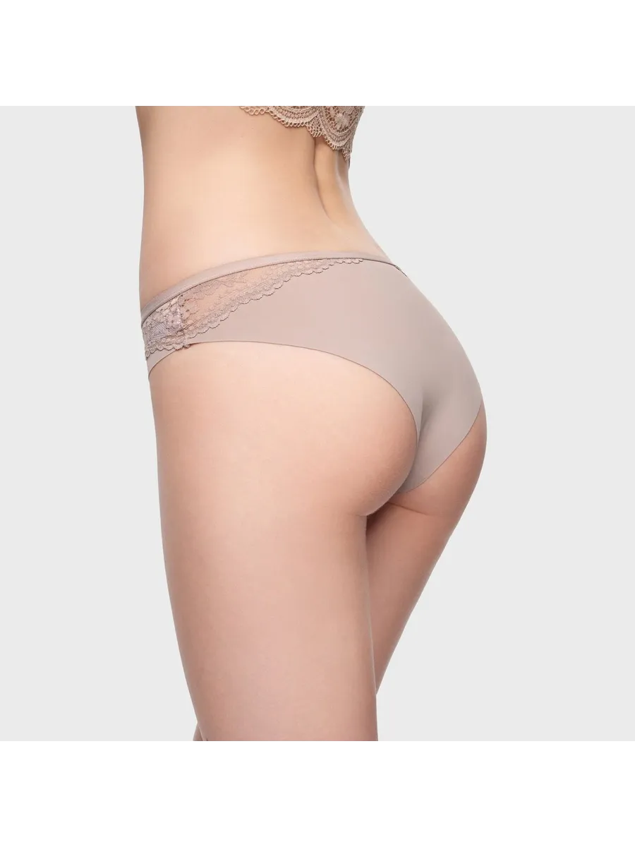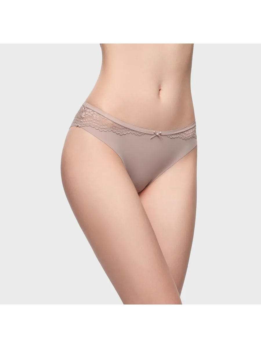 Трусы выполнены в светлом цвете, который легко сочетается с любой одеждой и не вызывает раздражения. Кружево добавляет изысканности и элегантности, делая образ более женственным и привлекательным.