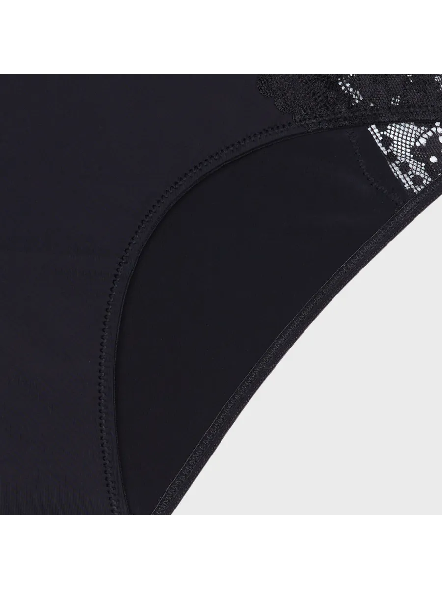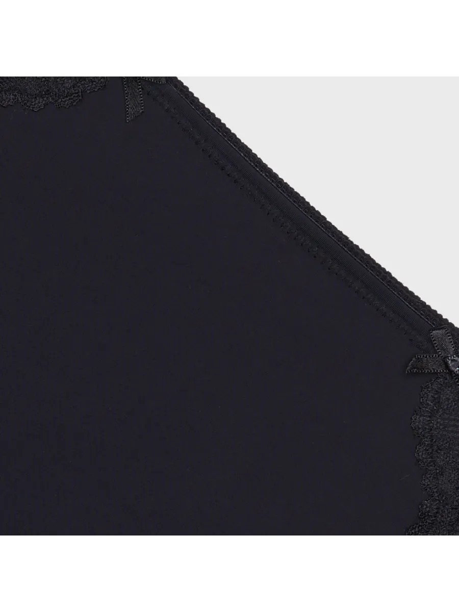 Состав материала включает 77% полиамида и 23% эластана, что обеспечивает высокую прочность и эластичность. Кружево, использованное в декоре, состоит из 88% полиамида и 12% эластана, что гарантирует мягкость и комфорт при носке.